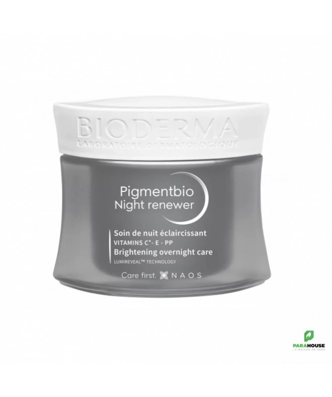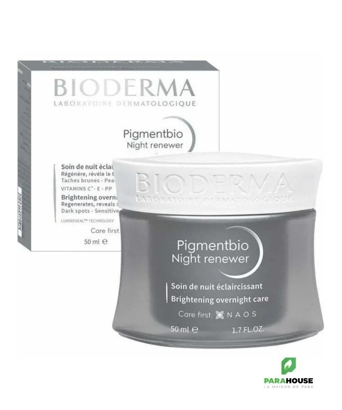 BIODERMA PIGMENTBIO SOIN DE NUIT ECLAIRCISSANT - Night renewer BIODERMA PIGMENTBIO SOIN DE NUIT ÉCLAIRCISSANT est un soin qui vise à corriger les taches et réduire leur couleur pour un teint unifié et éclatant. Il aide à atténuer les taches brunes existantes et empêche l’apparition de nouvelles taches. PIGMENTBIO Night Renewer illumine et unifie le teint, raffermit et lisse la peau, repulpe la peau. La sensorialité incomparable du produit se prolonge jusqu'au matin avec une texture aqueuse fraîche et légère. La Technologie LumiReveal™, intégrée à Pigmentbio Night Renewer est complétée par une puissante combinaison de filtres ainsi qu'un cocktail de vitamines essentielles à la peau : Les vitamines C et E protègent la peau de la pollution et du stress oxydatif qui favorisent le vieillissement cutané prématuré dont les premiers signes visibles se traduisent par les taches; La Vitamine PP reconstruit la barrière cutanée et la renforce pour maintenir une hydratation durable. l'hexapeptide-2. Celui ci permet de réguler la production de collagène pour une peau plus lisse et ferme dès le matin. Il permet également de renforcer l'action éclaircissante du produit. Résultats : Atténue les taches brunes et les marques existantes Brillance : +52 % Fermeté : +43 % Peau repulpée et plus souple dès le réveil : 100 % Composition : Aqua/Water/Eau, Glycerin, Propanediol, Squalane, Ascorbyl Glucoside, Dipropylene Glycol, Niacinamide, Butylene Glycol, Polymethylsilsesquioxane, Hdi/Trimethylol Hexyllactone Crosspolymer, Carbomer, Sodium Hydroxide, Pentylene Glycol, Tocopheryl Acetate, C14-22 Alcohols, 1,2-Hexanediol, Caprylyl Glycol, Ammonium Acryloyldimethyltaurate/Vp Copolymer, Salicylic Acid, Sodium Citrate, Lysine, Azelaic Acid, C12-20 Alkyl Glucoside, Disodium Phosphate, Mannitol, Xylitol, Andrographis Paniculata Leaf Extract, Rhamnose, Sodium Metabisulfite, Potassium Phosphate, Saccharide Isomerate, Biosaccharide Gum-1, Glycyrrhiza Glabra (Licorice) Root Extract, Glyceryl Caprylate, Sodium Anisate, Sodium Levulinate, Fructooligosaccharides, Caprylic/Capric Triglyceride, Hexapeptide-2, Laminaria Ochroleuca Extract, Fragrance (Parfum). [Bi 748] Très bonne tolérance; Non comédogène; Conseils d'utilisation : Il est conseillé d'appliquer BIODERMA PIGMENTBIO SOIN DE NUIT le soir sur le visage et le cou préalablement nettoyés