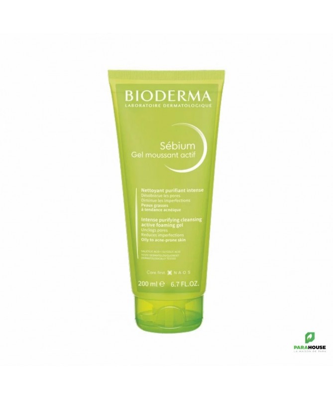 Nettoyant anti-imperfections. Désobstrue les pores. Tout en respectant votre peau.Bénéfices :Désobstrue les poresDiminue les imperfectionsNettoie en profondeurRespecte l’équilibre cutanéLe meilleur compromis entre efficacité kératolytique et bonne toléranceSans savon, Bonne tolérance , Non comédogèneCe qui se passe dans votre peau :Tous les produits du Laboratoire BIODERMA sont formulés selon le principe d'écobiologie qui est au cœur de la démarche NAOS, pour respecter l'écosystème de votre peau et préserver sa santé durablement.Sébium Gel moussant actif est tout spécialement formulé pour les peaux à tendance acnéique, de manière à agir à la fois sur les causes et les conséquences de ces imperfections dès le nettoyage:l'association de l’acide salicylique et de l’acide glycolique aide à désobstruer les pores, diminuer les imperfections et affiner le grain de peaule gluconate de zinc, régule la brillancele caprylyl-capryl-glucoside: base lavante douce nettoie en douceur tout en respectant l’équilibre de la peauun pH optimal qui permet d’obtenir le meilleur compromis entre efficacité et bonne tolérance.Conseils d'utilisation :Sébium Gel moussant actif s’utilise matin et/ou soir jusqu’à disparition des imperfections.Visage et corpsÉTAPE 1:Faire mousser le gel entre les mains mouillées et appliquer en massant doucement la peau.ÉTAPE 2:Rincer abondamment.ÉTAPE 3:Sécher délicatement.En cas d’inconforts: gêne et légères rougeurs , espacer les applications 1 jour sur 2.Si l’irritation persiste, arrêter d’utiliser le produit et consulter votre professionnel de santé.Eviter une utilisation conjointe de Sébium Gel moussant actif avec des traitements médicamenteux.Pour les peaux fines et sensibles, un nettoyantpurifiant doux tel que Sébium gel moussant sera à privilégier.Efficacité & composition :Mieux comprendre, mieux prendre soin:A la puberté, la peau se transforme : elle s’épaissit, devient brillante, des imperfections plus ou moins importantes apparaissent, et persistent parfois jusqu’à l’âge adulte.L'acné est une maladie inflammatoire chronique due à un déséquilibre hormonal, un excès de sébum de mauvaise qualité et la proliférationde la bactérie C.Acnes.L’acné associe deux types de lésions :• Rétentionnelles : microkystes et comédons (souvent appelés points noirs).• Inflammatoires : papules, pustules ou nodules, pouvant conduire à la formation de cicatrices.La sévérité de l’acné varie de formes minimes, dite « physiologiques » à des formes très sévères. L’hygiène est une étape clé dans la prise en charge de la pathologie.Une routine avec un produit d’hygiène adapté aux peaux grasses ou à tendance acnéique est nécessaire et recommandée aux patients dans le cadre de leur traitement. C’est une première étape de soin.Testé sous contrôle dermatologiqueRésultats immédiats :Peau purifiée : 97%Peau nettoyée en profondeur : 90%Peau douce 90%Peau lissée: 87%Résultats dans la durée:Les pores sont désobstrués : 72%Les imperfections sont diminuées : points noirs-17%, boutons -32%Liste des ingrédients :AQUA/WATER/EAU,CAPRYLYL/CAPRYL GLUCOSIDE,PROPANEDIOL,GLYCERIN,ZINC GLUCONATE,SALICYLIC ACID,GLYCOLIC ACID,COCO-GLUCOSIDE,GLYCERYL OLEATE,CELLULOSE GUM,SODIUM HYDROXIDE,CITRIC ACID,FRAGRANCE (PARFUM),INULIN,XANTHAN GUM,MANNITOL,SODIUM CITRATE,XYLITOL,CELLULOSE,FRUCTOSE,GLUCOSE,RHAMNOSE,SODIUM METABISULFITE,FRUCTOOLIGOSACCHARIDES,TOCOPHEROL,HYDROGENATED PALM GLYCERIDES CITRATE. [BI2005]
