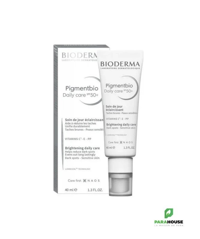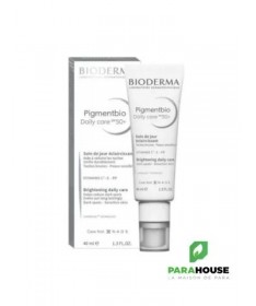 BIODERMA PIGMENTBIO DAILY CARE SPF50+ 40ML BIODERMA PIGMENTBIO DAILY CARE SPF50+ est un soin quotidien multi fonction : il aide à atténuer les taches brunes existantes et empêche l’apparition de nouvelles, est un excellent éclaircissant, rehausse le teint, hydrate durablement, offre une brillance immédiate grace à sa texture nacrée offre et s’applique très aisément. Il offre également une très haute protection solaire anti-UVA/UVB (SPF 50+) La Technologie LumiReveal™, intégrée à Pigmentbio Daily care SPF50+ est complétée par une puissante combinaison de filtres ainsi qu'un cocktail de vitamines essentielles à la peau : les filtres solaires assurent une protection à large spectre anti-UVA et anti-UVB (SPF50+) pour protéger la peau des méfaits des rayons UV les vitamines C et E protègent la peau de la pollution et du stress oxydatif qui favorisent le vieillissement cutané prématuré dont les premiers signes visibles se traduisent par les taches la Vitamine PP reconstruit la barrière cutanée et la renforce pour maintenir une hydratation durable Daily Care SPF50+ contient également de l'acide salicylique pour renforcer l'action éclaircissante du produit. Grâce à son pouvoir lissant et unifiant, il améliore l'éclat du teint instantanément. Résultats : Atténue les taches brunes et les marques existantes Efficacité contre les taches brunes et les marques : 96 % Absence de réapparition de taches et marques : 96 % Corrige et unifie le teint Teint unifié et illuminé : 91 % Composition : AQUA/WATER/EAU, DICAPRYLYL CARBONATE, OCTOCRYLENE, METHYLENE BIS-BENZOTRIAZOLYL TETRAMETHYLBUTYLPHENOL [NANO], GLYCERIN, BUTYL METHOXYDIBENZOYLMETHANE, DIPROPYLENE GLYCOL, BIS-ETHYLHEXYLOXYPHENOL METHOXYPHENYL TRIAZINE, DIMETHICONE, ASCORBYL GLUCOSIDE, BUTYROSPERMUM PARKII (SHEA) OIL, NIACINAMIDE, SILICA, POLYMETHYLSILSESQUIOXANE, JOJOBA ESTERS, HDI/TRIMETHYLOL HEXYLLACTONE CROSSPOLYMER, DECYL GLUCOSIDE, C20-22 ALKYL PHOSPHATE, C20-22 ALCOHOLS, XANTHAN GUM, HELIANTHUS ANNUUS (SUNFLOWER) SEED WAX, DIMETHICONE/VINYL DIMETHICONE CROSSPOLYMER, PENTYLENE GLYCOL, TOCOPHERYL ACETATE, SODIUM HYDROXIDE, HYDROGENATED CASTOR OIL, SALICYLIC ACID, SODIUM CITRATE, LYSINE, AZELAIC ACID, MANNITOL, POLYGLYCERIN-3, XYLITOL, ANDROGRAPHIS PANICULATA LEAF EXTRACT, RHAMNOSE, PROPYLENE GLYCOL, ACACIA DECURRENS FLOWER WAX, SACCHARIDE ISOMERATE, GLYCYRRHIZA GLABRA (LICORICE) ROOT EXTRACT, TOCOPHEROL, FRUCTOOLIGOSACCHARIDES, CAPRYLIC/CAPRIC TRIGLYCERIDE, LAMINARIA OCHROLEUCA EXTRACT, FRAGRANCE (PARFUM). [BI 747] Conseils d'utilisation : Il est conseillé d'appliquer PIGMENTBIO Soin quotidien SPF50+ sur le visage et le cou préalablement nettoyés.
