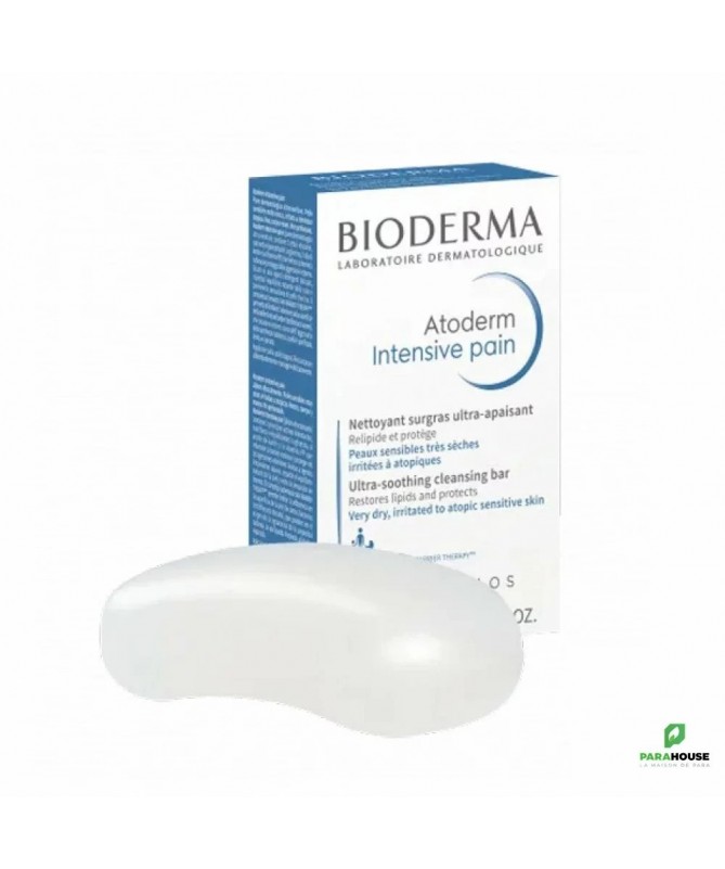 Bioderma Atoderm Intensive pain 150gr Atoderm pain surgras nettoie et purifie au quotidien les peaux connaissant des sécheresses intenses, chroniques et récidivantes, les peaux sèches et réactives et les peaux épaissies et squameuses au toucher rugueux. Atoderm pain surgras lutte contre la prolifération des micro-organismes responsables de l’aggravation des sécheresses cutanées et donc espace les poussées réactives. Atoderm pain permet, dès l’hygiène, de renforcer la barrière cutanée. Indications : Peaux sèches Composition : SODIUM PALMATE SODIUM PALM KERNELATE AQUA/WATER/EAU BUTYROSPERMUM PARKII (SHEA) OIL GLYCERIN SODIUM CHLORIDE ZINC SULFATE MANNITOL POLYSORBATE 20 XYLITOL RHAMNOSE TETRASODIUM EDTA TETRASODIUM ETIDRONATE NIACINAMIDE FRUCTOOLIGOSACCHARIDES. [BI 474] Conseils d'utilisation : Mouillez votre visage et votre corps à l’eau tiède et faites mousser Atoderm pain surgras dans vos mains, puis appliquez la mousse sur votre peau par mouvements circulaires. Rincez abondamment ; le temps de rinçage doit toujours être supérieur au temps de lavage. Il est impératif de sécher votre peau. Le séchage doit rester délicat. Tamponnez votre visage et votre corps avec une serviette en coton propre, avant l’application de la crème hydratante. Atoderm pain surgras s’utilise 1 à 2 fois par jour.