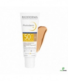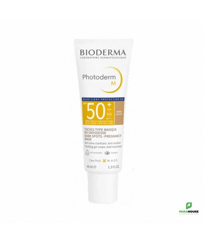 BIODERMA Photoderm M SPF50+ teinte dorée 40ML BIODERMA Photoderm M SPF50+ : Le teint doré, sans brillance excessive, éclaire naturellement le teint et le sublimera tout au long de la journée. Grâce à son indice de protection solaire SPF 50+, ce soin est hautement protecteur contre les rayons UVA et UVB. Il permet de retarder l’apparition des taches de dépigmentation, masque déjà les taches existantes et évite les rechutes. Photoderm M teinte aide à éviter la formation de taches de rousseur, réduit les décolorations existantes et la repigmentation. Elle permet de traiter la dépigmentation provoquée par la lumière bleue sur les peaux sensibles, par exemple le masque de grossesse Composition : AQUA/WATER/EAU OCTOCRYLENE DICAPRYLYL CARBONATE METHYLENE BIS-BENZOTRIAZOLYL TETRAMETHYLBUTYLPHENOL [NANO] BUTYL METHOXYDIBENZOYLMETHANE TITANIUM DIOXIDE (CI 77891) HYDROGENATED PALM KERNEL GLYCERIDES BIS-ETHYLHEXYLOXYPHENOL METHOXYPHENYL TRIAZINE BUTYLENE GLYCOL HYDROXYPROPYL DIMETHICONE BEHENATE POTASSIUM CETYL PHOSPHATE METHYLPROPANEDIOL CYCLOPENTASILOXANE GLYCERYL STEARATE PEG-100 STEARATE IRON OXIDES (CI 77492) DECYL GLUCOSIDE HYDROGENATED PALM GLYCERIDES CYCLOHEXASILOXANE PENTYLENE GLYCOL TOCOPHERYL ACETATE AMMONIUM ACRYLOYLDIMETHYLTAURATE/VP COPOLYMER XANTHAN GUM IRON OXIDES (CI 77491) DISODIUM EDTA IRON OXIDES (CI 77499) 1,2-HEXANEDIOL CAPRYLYL GLYCOL CITRIC ACID MANNITOL XYLITOL DISODIUM STEAROYL GLUTAMATE RHAMNOSE PROPYLENE GLYCOL ALUMINUM HYDROXIDE ECTOIN GLYCYRRHIZA GLABRA (LICORICE) ROOT EXTRACT TOCOPHEROL. [BI 711] Peut être utilisé chez les femmes enceintes et allaitantes Très bonne tolérance Non comédogène Résiste à l’eau Conseils d'utilisation: Il est conseillé d'appliquer Photoderm M teinte sur le visage le matin, après votre crème de jour. Il est recommandé de renouveler fréquemment l’application, avant et après chaque bain, frottement ou activité sportive.