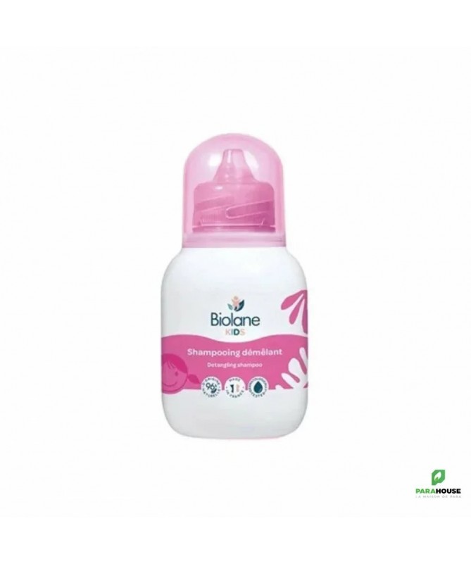BIOLANE KIDS SHAMPOING DEMELANT 250ML Le Shampooing Démèlant Biolane enfant permet de nettoyer d'une façon efficace les cheveux et les démèle également en un seul geste. BIOLANE KIDS SHAMPOING se caractérise par une formule au miel qui facilite le coiffage et rend les cheveux plus doux et brillants. Il est formulé sans paraben et sans savon afin de préserver l'équilibre naturel cutané. Sa formule lui permet de minimiser les risques d'allergie : hypoallergenique. Il est testé sous contrôle dermatologique et ophtalmologique : il ne coule pas et ne pique pas les yeux. Il a une texture de gel transparente délicatement parfumée qui méne à une véritable sensation de plaisir lors de l'utilisation. BIOLANE KIDS SHAMPOING DEMELANT est ultra pratique puisqu'il pésente un dosage précis et rapide : la capsule délivre la quantité nécessaire de produit. Il est également trés économique puisque sa texture en gel ne coule pas et donc évite tout gaspillage. Indications : Il est conseillé pour tous types de cheveux. Pou un usage fréquent. Il nettoie et démèle en un seul geste. Il est tés doux : sans savon ( ne pique pas les yeux) , sans paraben et hypoallergenique : destiné pour les enfants à partir de 3 ans . Conseils d'utilisation: Il est indiqué d'appliquer le Shampooing Démèlant Biolane enfant sur cheveux mouillés : de faire mousser puis rincer abondamment.