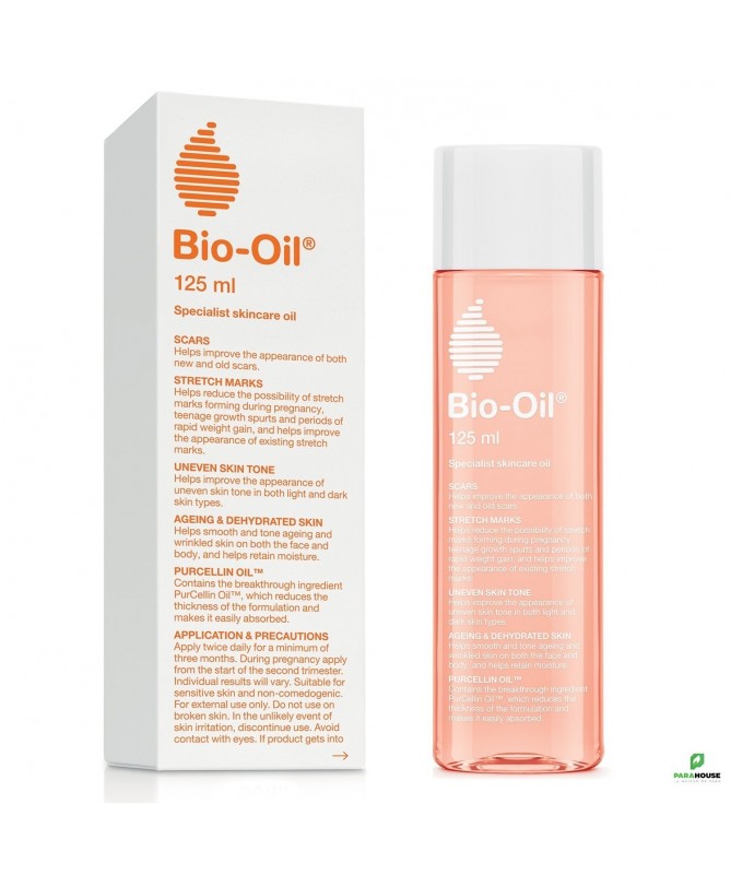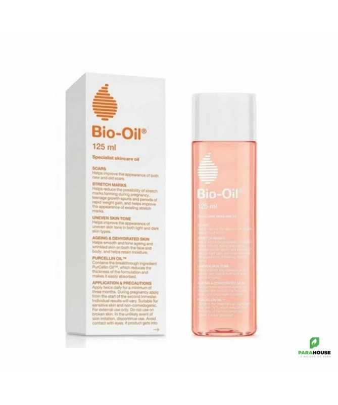 BIO-OIL HUILE DE SOIN Spécialisée 125ML BIO OIL HUILE DE SOIN Spécialisée est une combinaison d’extraits de plantes et de vitamines en suspension dans une base huileuse. Il contient un ingrédient unique, le PurCellin Oil™, qui change la consistance générale de la formulation, la rendant plus légère et non grasse. Il assure ainsi l’absorption par la peau des bienfaits contenus dans les vitamines et les extraits de plantes. BIO OIL HUILE DE SOIN a passé les évaluations de sécurité conformément à la Réglementation du Parlement Européen et du Conseil relatif aux Produits Cosmétiques. Composition : Extraits de plantes, Anthemis Nobilis Flower Oil (Huile de Camomille), Calendula Officinalis Flower Extract (Huile de Calendula), Amyl Cinnamal, Benzyl Salicylate, Lavandula Angustifolia Oil (Huile de Lavande), Rosmarinus Officinalis Leaf Oil (Huile de Romarin) , Vitamines , Base huileuse, Paraffinum Liquidum, Retinyl Palmitate (Vitamine A) , Tocopheryl Acetate (Vitamine E), Triisononanoin , Cetearyl Ethylhexanoate, Isopropyl Myristate, Glycine Soja Oil, Helianthus Annuus Seed Oil, BHT, Bisabolol, Parfum (Rose), Parfum, Alpha-Isomethyl Ionone, Citronellol, Coumarin, Eugenol, Farnesol, Geraniol, Hydroxycitronellal, Hydroxyisohexyl 3-Cyclohexene Carboxaldehyde, Limonene, Linalool, Couleur, CI 26100 Conseils d'utilisation : Afin d’observer les meilleurs résultats, il est conseillé d’utiliser Bi-Oil pendant une durée minimale de 3 mois à raison de 2 applications quotidiennes. Pour les femmes enceintes, utiliser à partir du début du 2ème trimestre de grossesse. Les effets peuvent varier d’une personne à l’autre. Le respect de la posologie est très important pour observer des résultats satisfaisants. Utilisation contre les vergetures: le corps est sujet à plusieurs types de transformations, les vergetures étant les signes de changement les plus visibles sur la peau. Pour prévenir les vergetures et les atténuer, appliquez Bi-Oil sur les zones touchées. Frictionnez jusqu’à absorption complète, 2 fois par jour. Les vergetures les plus ancrées seront fortement atténuées. Utilisation contre les cicatrices : Une fois le processus de cicatrisation naturelle terminée, appliquez Bio oil par mouvements circulaires sur la zone à traiter. Ne surtout pas utiliser sur les peaux endommagées. En cas d’acné attendre la guérison des boutons pour utiliser le produit. Utilisation contre le teint irrégulier : Afin de rééquilibrer la production inégale de mélanine de certaines peaux, appliquez Bi-Oil sur les zones atteintes de taches pigmentaires. Utilisation contre le vieillissement de la peau: Bi-Oil lisse, adoucit et assouplit la peau. Appliquez sur vos rides afin d’améliorer la texture et l’aspect de vos lignes ridées. Faire pénétrer délicatement, par massage, du bout des doigts. Vous pouvez également appliquer Bi-Oil sur l’ensemble du visage, en sérum, matin et soir pour prévenir le vieillissement de la peau. Utilisation contre la peau déshydratée: Les composants de Bi-Oil permettent de compléter votre hydratation quotidienne. Appliquez Bi-Oil sur les zones sèches de votre peau, massez pour faire pénétrer. Vous pouvez également dissoudre quelques gouttes de Bi-Oil dans votre crème hydratante habituelle et vous en enduire le corps. Utilisation en soin après-soleil: après une exposition au soleil, recouvrez-vous de Bi-Oil. Votre peau est réhydratée et soulagée des agressions UV. Bi-Oil ne contient pas d’écran solaire. Si vous utilisez un écran solaire, appliquez-le une fois que Bio‑Oil a été totalement absorbé.