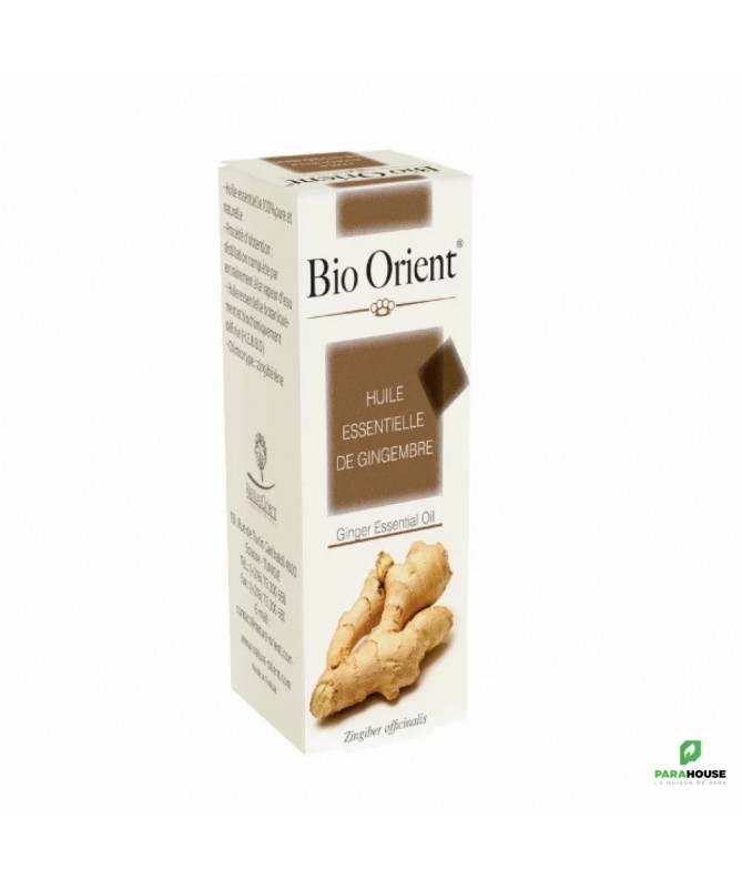 BIO ORIENT Huile essentielle de Gingembre 10ML PROPRIÉTÉS DE SANTE Apéritif, stomachique, carminatif, tonique du système digestif remarquable Antalgique, anti-inflammatoire Laxatif léger Antitussif, antispasmodique PROPRIÉTÉS DE BIEN ETRE BIO ORIENT Huile essentielle de Gingembre est un Stimulant, tonique sexuel, aphrodisiaque puissant