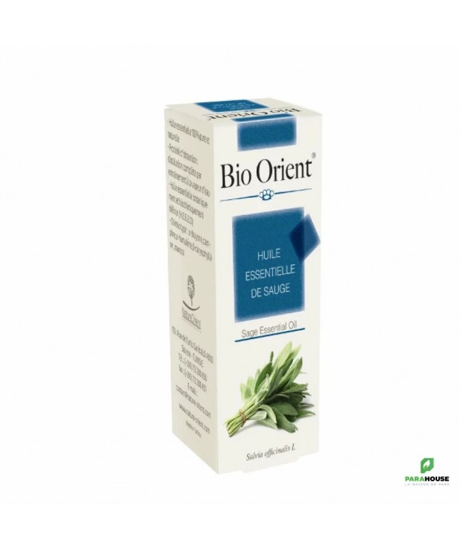 BIO ORIENT Huile essentielle de Sauge 10ML PROPRIÉTÉS DE SANTE Antibactérienne spécifique (coques gram +, staphylocoques dorés, streptocoques) Antifongique (Candida albicans) Antivirale puissante Expectorante, mucolytique Cholagogue et cholérétique, elle stimule les sécrétions biliaires et pancréatiques, modère l'excès de cholestérol. Emménagogue et mimétique des oestrogènes, elle régule les cycles menstruels et soulage les troubles liés aux cycles et à la ménopause. PROPRIÉTÉS DE BEAUTE Lipolytique, elle facilite l'élimination des graisses. Anti-cellulitique BIO ORIENT Huile essentielle de Sauge est cicatrisante cutanée S’oppose à la transpiration et aux bouffées de chaleur, diminue les sécrétions salivaires.