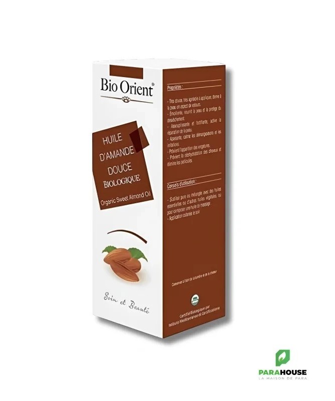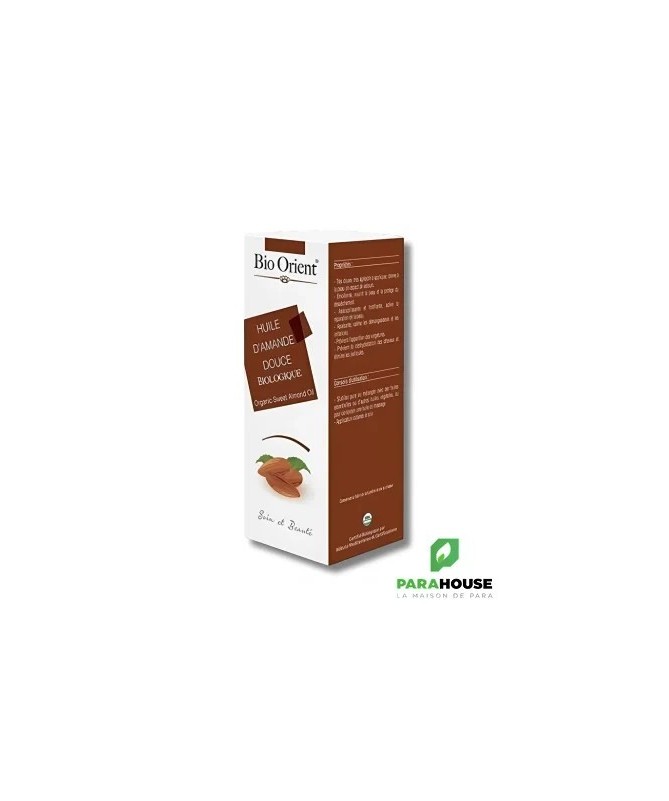 Huile d'Amande Douce BioTrès douce et agréable à appliquer, cette huile est émolliente, nourrit la peau et la protège du dessèchement. Elle est assouplissante et fortifiante, favorisant la réparation cutanée, tout en apaisant démangeaisons et irritations.Prévient l'apparition des vergeturesPréserve l'hydratation des cheveux et aide à éliminer les pelliculesConseils d'utilisation :S'utilise pure, mélangée avec des huiles essentielles ou d'autres huiles végétales, ou pour composer une huile de massage. Application cutanée recommandée le soir.Procédé d’obtention :Première pression à froidOrganes pressés : Amande douce issue des fruitsNom botanique :Prunus dulcisQualité : BiologiquePays d'origine : TunisieComposition :Acides gras essentiels : oméga 6 : 24,03%Acide oléique : 64%PhytostérolsAlcools triterpéniques
