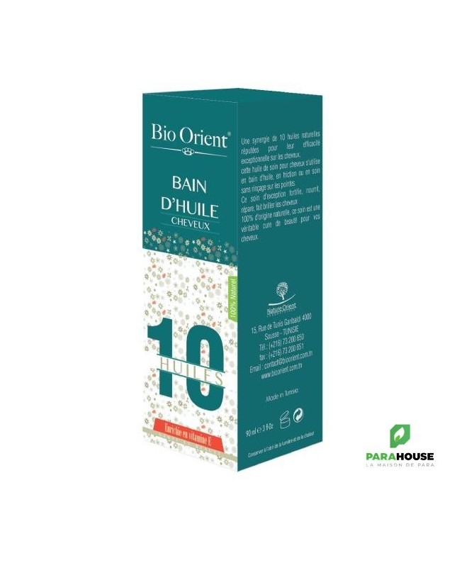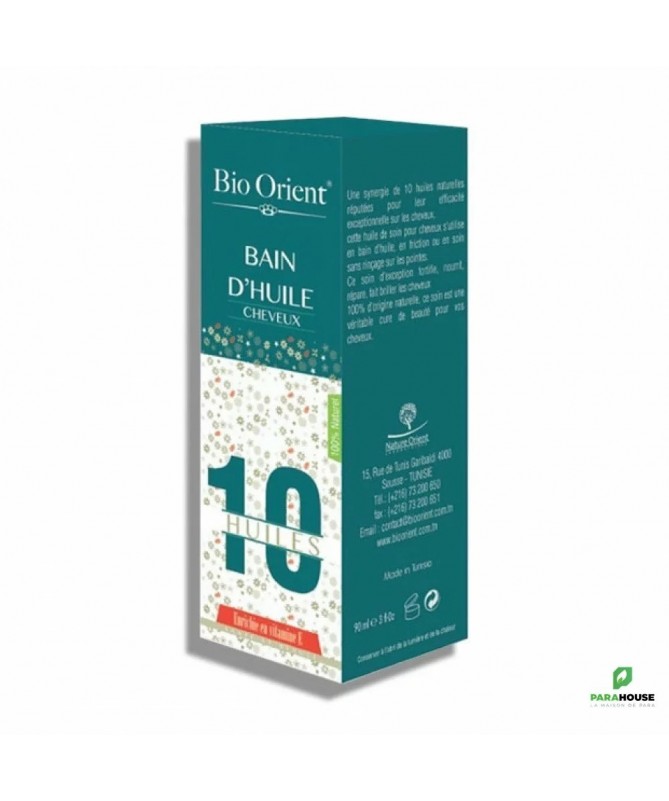 BIO ORIENT BAIN D'HUILES CHEVEUX 90ML Bio orient bain de huiles forme une synergie de 10 huiles naturelles réputées pour leur efficacité exceptionnelle sur les cheveux, Cette huile de soin pour cheveux de bio orient s’utilise en bain d’huile, en friction ou en soin sans rinçage sur les pointes Bio Orient le soin d’exception fortifie, nourrit répare, fait briller les cheveux 100% d’origine naturelle ce soin est une véritable cure de beauté pour vos cheveux Composition : Huile de Ricin , Huile de Coco , Huile de Moutarde , Huile de Cresson , Huile d’Avocat , Huile de jojoba , Huile d’ortie , Huile de Sésame , Huile d’amande douce , Huile essentielle de lavande et Vitamine E Conseils d'Utilisation : Il est indiqué d'utiliser le bain de huiles bio orient : En friction du cuir chevelu, fortifie et stimule la pousse des cheveux En bain d’huile avant shampooing nourrit et apporte brillance, souplesse et douceur à la chevelure Soin sans rinçage sur les pointes pour gainer, réparer et sublimer vos cheveux