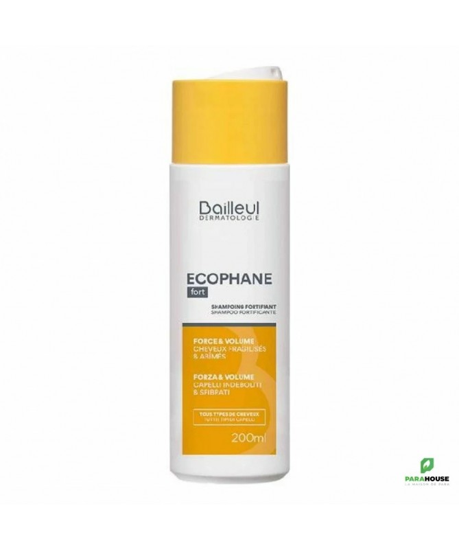 ECOPHANE SHAMPOOING FORTIFIANT 200ML ECOPHANE SHAMPOOING FORTIFIANT aide les cheveux abîmés, dévitalisés et ternes à retrouver leur force. BÉNÉFICES Cheveux fragilisés, abîmés, ternes, secs, fourchus Cheveux et cuir chevelu sensibles Force, éclat, volume Nettoie les cheveux en douceur Efficacité prouvée Ne pique pas les yeux Facilite le démêlage Composition : AQUA (WATER), SODIUM LAURETH SULFATE, PANTHENOL, DISODIUM COCOAMPHODIACETATE, COCAMIDE MEA, POLYQUATERNIUM-10, SODIUM CHLORIDE, GLYCOL STEARATE, PARFUM (FRAGRANCE), SODIUM BENZOATE, CITRIC ACID, MAGNESIUM PCA, PEG-80 GLYCERYL COCOATE, BENZOPHENONE-4, TETRASODIUM EDTA, TOCOPHERYL NICOTINATE, ZINC GLUCONATE, HYDROLYZED WHEAT PROTEIN, HYDROLYZED WHEAT STARCH, SODIUM ACETATE, SODIUM HYALURONATE, POLYSORBATE 20, ISOPROPYL ALCOHOL. CONSEILS D'UTILISATION Appliquer sur cheveux mouillés en massant délicatement le cuir chevelu. Faire mousser, laisser agir et rincer à l'eau tiède. Associer avec Ecophane Comprimés pour une plus grande efficacité. Rincer abondamment en cas de contact avec les yeux.