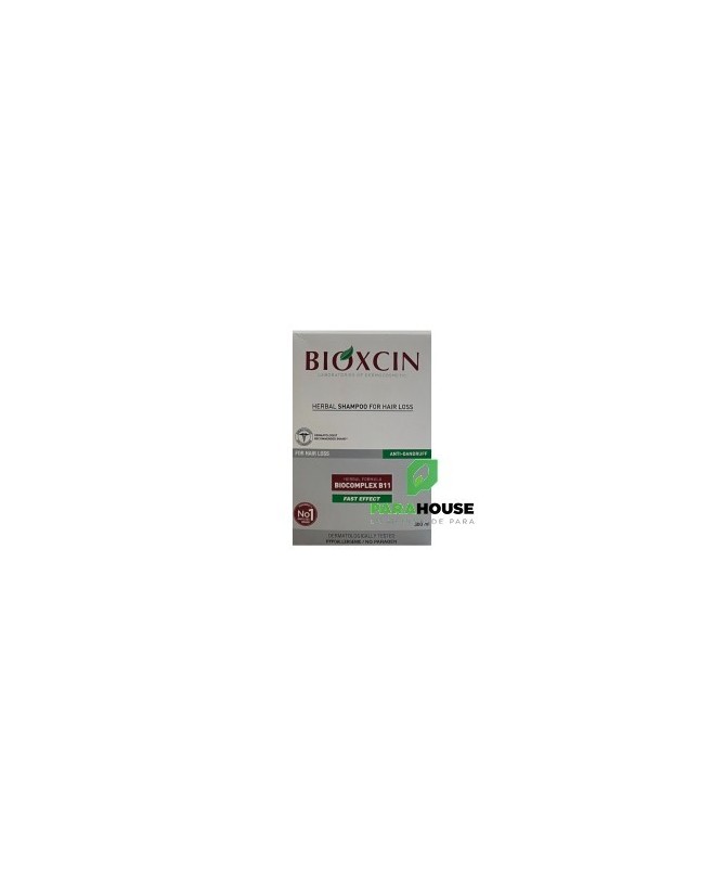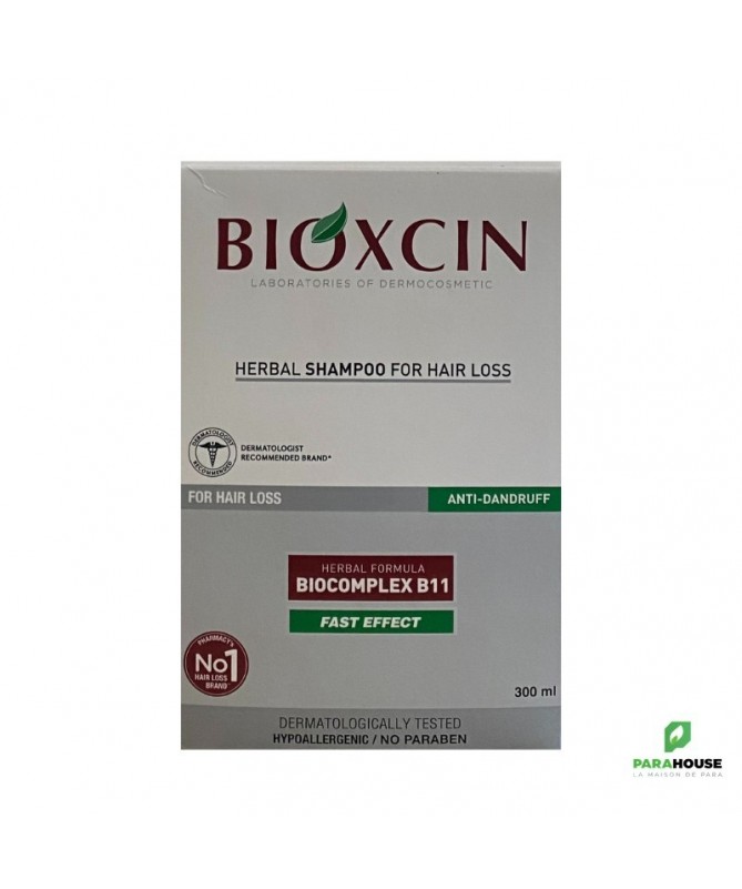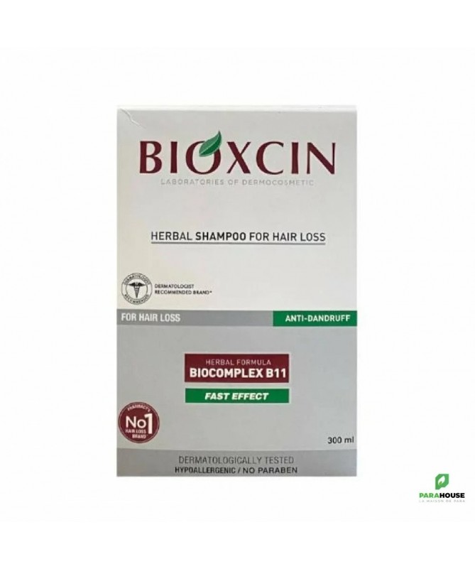 Bioxsine Shampooing anti chute & Anti pelliculaire 300ml Bioxsine shampooing contre les pellicules et la chute des cheveux Bioxsine Shampooing anti chute & Anti pelliculaire prévient la chute des cheveux mais agit aussi efficacement contre les pellicules. En même temps, le shampooing Bioxsine entretient les cheveux et atténue démangeaisons et sensations de tiraillement. COMPOSITION Biocomplex B11-herbal extract, aqua, sodium laureth sulfate, propylene glycol, dehydroacetic, acid, citronellol, mel/honey, disodium cocoamphodiacetate, decyl glucoside, PEG/PPG-120/10, sodium chloride, laureth-2, phenoxyethanol, parfum, trimethylpropane triolate, polysorbate-20, amodimethicone, hydroxypropyl guar, hydroxypropyltrimonium chloride, laureth-9, glycerin, trideceth-12, benzoic acid, C11-15 Pareth-7, geraniol, citric-acid CONSEILS D''UTILISATION: Appliquez Bioxsine Shampooing sur cheveux humides et faites pénétrer le produit en massant. Laisser agir et rincez abondamment. Bioxsine Shampooing convient pour une utilisation quotidienne. Des tests cliniques ont montré que l''utilisation du shampooing Bioxsine présente une double efficacité: Diminution de la chute des cheveux chez 70% des utilisateurs. Augmentation du nombre de cheveux en phase de croissance chez 40% des utilisateurs.