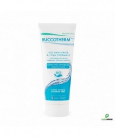 BUCCOTHERM GEL DENTIFRICE GENCIVES SENSIBLES 75ML BUCCOTHERM GEL DENTIFRICE GENCIVES SENSIBLES est un dentifrice destiné à soulager les inflammations et les irritations gingivales. Concentré en Eau thermale de Castéra-Verduzan, apaisante et cicatrisante, ce dentifrice certifié BIO non abrasif favorise la diminution des saignements occasionnels et des sensibilités gingivales. BUCCOTHERM DENTIFRICE GENCIVES SENSIBLES vous accompagnera dans votre hygiène quotidienne, en soulageant rapidement et avec douceur les petites contrariétés dentaires. Son dosage en fluor spécifiquement adapté permet de prévenir la formation des caries. Un soin complet et sûr pour vous ainsi que pour la planète. Ne contient pas d’ingrédients controversés. Composition : Aqua (Castéra-Verduzan Thermal Water*), Glycerin**, Hydrogenated Starch Hydrolysate, Aqua, Hydrated Silica, Decyl Glucoside, Cellulose Gum Aroma***, Sodium Benzoate, Sodium Fluoride, Stevia Rebaudiana Extract***, Sodium Hydroxide, Limonene. Conseils d'utilisation : Il est conseillé d'utiliser BUCCOTHERM DENTIFRICE GENCIVES SENSIBLES quotidien pendant 2 minutes, au moins deux fois par jour. Ce gel dentifrice convient: Aux adultes recherchant un soin bucco-dentaire complet Aux personnes souffrant d’hypersensibilité gingivale