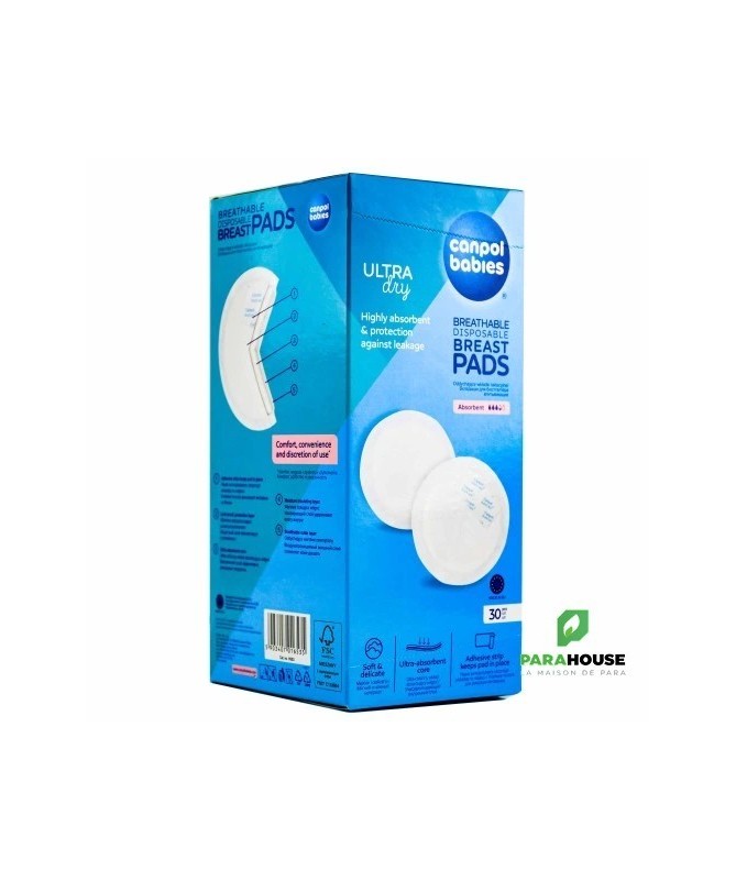 CANPOL BABIES COUSSINETS D'ALLAITEMENT ABSORBANTS 30 Les coussinets d'allaitement ultra absorbants pour bébés canpol offrent une protection et une sensation unique de sécheresse et de fraîcheur 3 fois plus rapide pendant la journée et la nuit. Ils sont très fins, grâce auxquels ils sont discrets et invisibles sous les sous-vêtements et les vêtements. Les coussinets d'allaitement sont dotés de 7 couches protectrices, dont un insert ultra absorbant qui absorbe rapidement les liquides et retient l'humidité à l'intérieur du coussin pendant longtemps. La couche supérieure douce est douce pour la peau et respirante, permettant à la peau de respirer librement et n'irrite pas les seins sensibles. La forme anatomique 3D augmente le confort de port et permet au coussinet de s'adapter parfaitement à la forme de la poitrine. La double bande adhésive maintient le coussinet en place, l'empêchant de bouger à l'intérieur du soutien-gorge, protégeant ainsi les sous-vêtements et les vêtements de la saleté, garantissant hygiène et confort d'utilisation. Les coussinets d'allaitement Canpol pour bébés ne se délaminent pas lorsqu'ils sont remplis de liquide et conservent leur forme d'origine. Chaque paire est emballée séparément dans un sac plastique pour une hygiène maximale.