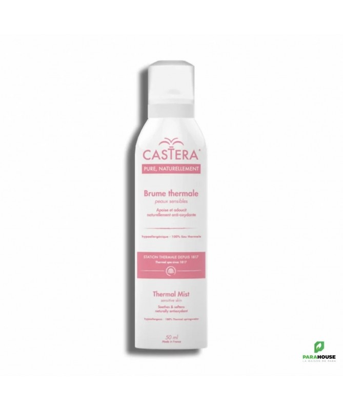 CASTERA BRUME THERMALE CASTERA BRUME THERMALE est une eau adaptée pour les peaux sensibles pour toute la famille. Riche en sels minéraux et oligo-éléments, l'Eau thermale de Castéra-Verduzan est reconnue pour ses vertus apaisantes, adoucissantes et anti-oxydantes. Sa composition minérale unique permet d'apaiser les irritations, rougeurs et démangeaisons après exposition au soleil, après épilation, après rasage (feu du rasoir), pour les rougeurs du siège du bébé, pour fixer le maquillage et parfaire le démaquillage, lors d'un voyage pour se rafraichir. . Composition : Aqua (Castéra-Verduzan thermal water), Nitrogen. Conseils d'utilisation : Il est conseillé de vaporiser sur la peau à 15cm une fine brume autant que nécessaire. Laisser agir quelques instants. Sécher délicatement si nécessaire.