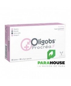 DESCRIPTION :OLIGOBS PROCREA F apporte les nutriments nécessaires pour mieux vous préparer à concevoir votre bébé. Sa formule pharmacologique s'adresse aux couples en âge de procréer mais touchés par l'infertilité. Ce complément alimentaire contient des Oméga 3 de très haute qualité. OLIGOBS PROCREA F aide la nature quand elle en a besoin, et combat les radicaux libres ainsi que leur impact négatif sur la fertilité.Conseils d'utilisationPrenez 1 gélule + 1 capsule de votre complément alimentaire PROCREA F par jour, de préférence le soir, à avaler avec un grand verre d'eau. Prenez-le en cure dès le désir d'enfant.CompositionPour 1 gélule : Inositol - Oxyde de magnésium lourd - Vitamine C - Taurine - Vitamine E - Oxyde de zinc - Lubrifiant : stéarate de magnésium (E 470b) - Sélénate de sodium - Gluconate de cuivre - Vitamine B12 - Vitamine B6 - Vitamine B9 - Chlorure de chrome - Enveloppe de la gélule : hypromellose - Colorant : dioxyde de titane. Pour 1 capsule : Huile de poisson - Antioxydant : tocophérol naturel - Extrait aromatique végétal - Enveloppe de la capsule : gélatine de poisson - Humectant : glycérol.