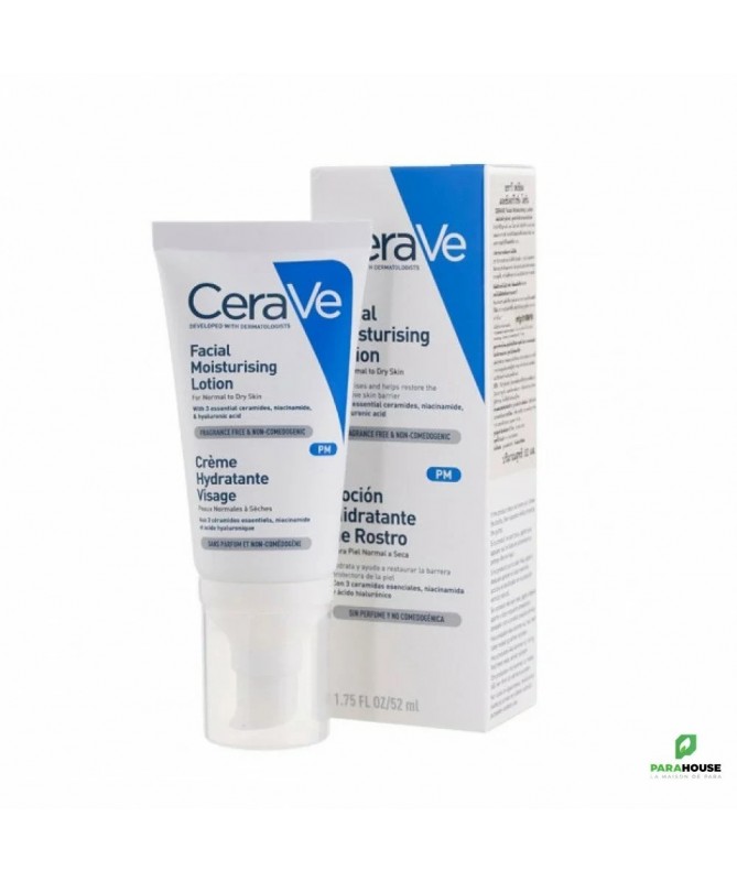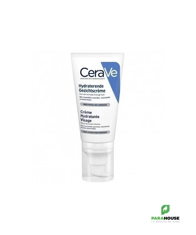 Description :La crème hydratante visage CeraVe est conçue pour les peaux normales à sèches qu'elle nourrit.Cette crème hydratante visage est enrichie aux 3 céramides essentiels, niacinamide et acide hyaluronique procurant une hydratation tout au long de la journée. La niacinamide, ou vitamine B3, est composée de l'acide nicotinique et de la nicotinamide. Elle permet de réduire l'irritation en améliorant la texture de la peau, elle lutte contre les états atopiques et les sécheresses cutanées par son pouvoir hydratant et contribue à améliorer l'élasticité de la peau. L'acide hyaluronique, ou éponge à eau, retient l'eau à la surface de la peau afin de maintenir son hydratation naturelle.Conseils d'utilisation :Appliquer aussi souvent que nécessaire.Éviter le contour des yeux. En cas de contact avec les yeux, les rincer immédiatement et abondamment.Composition :Aqua/Water, Glycerin, Caprylic/Capric Triglyceride, Niacinamide, Cetearyl Alcohol, Potassium Phosphate, Ceramide NP, Ceramide AP, Ceramide EOP, Carbomer, Dimethicone, Ceteareth-20, Behentrimonium Methosulfate, Sodium Lauroyl Lactylate, Sodium Hyaluronate, Cholesterol, Phenoxyethanol, Disodium EDTA, Dipotassium Phosphate, Caprylyl Glycol, Phytosphingosine, Xanthan Gum, Polyglyceryl-3 Diisostearate, Ethylhexylglycerin.