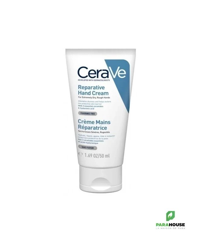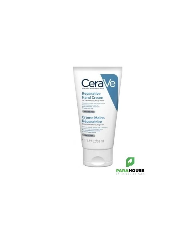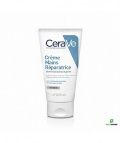 CeraVe Creme Mains Reparatrice 50ML CeraVe Crème Mains Réparatrice répare, apaise et hydrate intensément les mains sèches à très sèches. Développée avec des dermatologues, CeraVe Creme Mains répare, apaise et hydrate intensément les mains sèches à très sèches. CeraVe Crème Mains Réparatrice : Aide à restaurer la barrière protectrice. Texture fondante non grasse, non collante. Les mains sont douces et lisses. Formule Hypoallergénique et sans parfum. Trois céramides essentiels pour aider à maintenir la peau hydratée et à restaurer la barrière cutanée. La Technologie MVE permet d’encapsuler les actifs et de les diffuser dans la peau en continu. Cela permet de restaurer la barrière cutanée et de l’hydrater tout au long de la journée après seulement une application. CeraVe Creme Mains apaise les mains sèches et abimees Composition : AQUA/WATER, NIACINAMIDE, CETYL ALCOHOL, CAPRYLIC/CAPRIC TRIGLYCERIDE, GLYCERIN, PROPANEDIOL, ISONONYL ISONONANOATE, JOJOBA ESTERS, PEG-20 METHYL GLUCOSE SESQUISTEARATE, CETEARYL ALCOHOL, DIMETHICONE, METHYL GLUCOSE SESQUISTEARATE, PHENOXYETHANOL, SORBITOL, BEHENTRIMONIUM METHOSULFATE, CARBOMER, LAURETH-4, TRIETHANOLAMINE, TOCOPHEROL, BUTYLENE GLYCOL, PRUNUS AMYGDALUS DULCIS OIL/SWEET ALMOND OIL, HYDROGENATED VEGETABLE OIL, ETHYLHEXYLGLYCERIN, TETRASODIUM EDTA, SODIUM LAUROYL LACTYLATE, SODIUM HYDROXIDE, ZINC CITRATE, ASPARAGOPSIS ARMATA EXTRACT, EQUISETUM ARVENSE EXTRACT, MALTODEXTRIN, ALOE BARBADENSIS LEAF EXTRACT, ASCOPHYLLUM NODOSUM EXTRACT, CHRYSANTHELLUM INDICUM EXTRACT, CERAMIDE NP, CERAMIDE AP, PHYTOSPHINGOSINE, CHOLESTEROL, XANTHAN GUM, POTASSIUM SORBATE, SODIUM HYALURONATE, CERAMIDE EOP Conseils d'utilisation : Appliquer CeraVe Creme Mains Reparatrice généreusement aussi souvent que nécessaire.