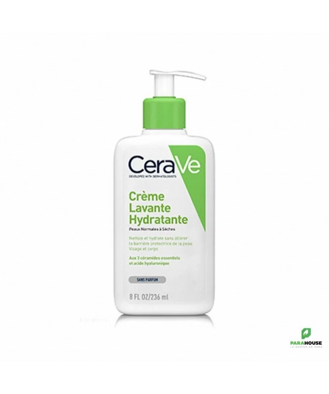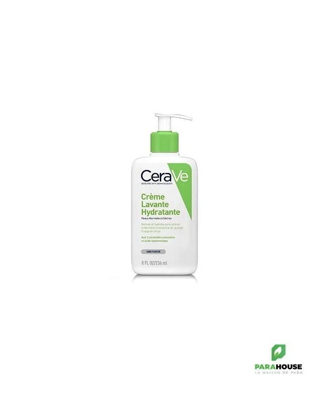 CeraVe Crème Lavante Hydratante 236ML CeraVe Creme Lavante Hydratante nettoie et hydrate en douceur, aide à renforcer la barrière protectrice de la peau. Développée avec des dermatologues, cerave creme lavante hydratante nettoie et hydrate efficacement sans altérer la barrière protectrice de la peau. Enrichie aux 3 céramides essentiels (1, 3, 6-II) et acide hyaluronique, crème lavante cerave, onctueuse et non moussante, nettoie et hydrate la peau dès la première utilisation, tout en laissant un fini de peau doux et soyeux. Trois céramides essentiels pour aider à maintenir la peau hydratée et à restaurer la barrière cutanée. La Technologie MVE permet d’encapsuler les actifs et de les diffuser dans la peau en continu. Cela permet de restaurer la barrière cutanée et de l’hydrater tout au long de la journée après seulement une application CeraVe Creme Lavante Hydratante convient aux peaux normales à sèches du corps et visage. Composition : AQUA/WATER, GLYCERIN, CETEARYL ALCOHOL, PHENOXYETHANOL, STEARYL ALCOHOL, CETYL ALCOHOL, PEG-40 STEARATE, BEHENTRIMONIUM METHOSULFATE, GLYCERYL STEARATE, POLYSORBATE 20, ETHYLHEXYLGLYCERIN, POTASSIUM PHOSPHATE, DISODIUM EDTA, DIPOTASSIUM PHOSPHATE, SODIUM LAUROYL LACTYLATE, CERAMIDE NP, CERAMIDE AP, PHYTOSPHINGOSINE, CHOLESTEROL, SODIUM HYALURONATE, XANTHAN GUM, CARBOMER, TOCOPHEROL, CERAMIDE EOP Conseils d'utilisation : Sous la douche sur une peau humide. Rincer à l'eau. CeraVe Crème Lavante Hydratante convient aux adultes et enfants. Ne pas appliquer sur le contour des yeux. En cas de contact, rincer abondamment et immédiatement.