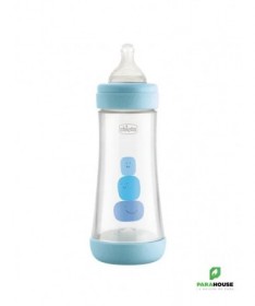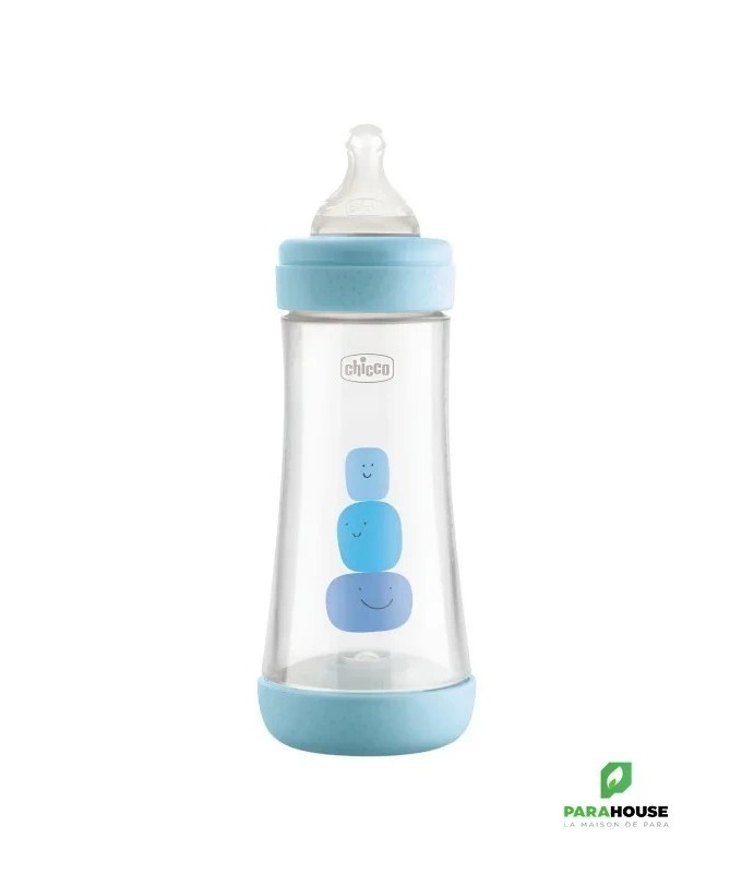 CHICCO BIBERON PERFECT 5 - 4M+ 300ML - FLUX RAPIDE CHICCO BIBERON PERFECT 5 - 4M+ est un biberon biofonctionnel qui détecte et s'adapte au rythme de succion de chaque bébé. CHICCO BIBERON PERFECT 5 est un biberon anticolique révolutionnaire combine la tétine Physio et l'innovante membrane Equilibrium pour s'adapter au rythme physiologique du bébé et à l'intensité de la tétée, tout en évitant l'ingestion d'air. Alimentation régulière et constante assurant au bébé une sensation naturelle grâce à la flexibilité de la valve avec membrane Equilibrium, qui crée des micro-mouvements pour s'adapter à l'intensité de succion du bébé. Tétine physiologique douce en silicone hygiénique avec finition Soft Sense. Hygiène maximale et nettoyage simple : La base dévissable permet de nettoyer rapidement et facilement chaque partie du biberon. QU'EST-CE QU'UN BIBERON « BIOFONCTIONNEL » ? Comprenant les besoins de chaque bébé, PERFECT 5 s'adapte immédiatement et continuellement au rythme physiologique de la succion, offrant un effet anticolique et assurant un bien-être maximal pendant et après la tétée. POURQUOI EST-IL SI INNOVANT ? PERFECT 5 est le seul biberon doté du système innovant intui-flow™ : l'action combinée exclusive de la tétine Physio et de la membrane Equilibrium s'adapte naturellement au rythme et à l'intensité de la succion de chaque bébé, propres à chaque enfant. L'EQUILIBRIUM MEMBRANE L'Equilibrium Membrane est une valve anti-colique flexible et dynamique située à la base du biberon, et qui permet à l'air de pénétrer dans le biberon sans se mélanger au lait, en évitant ainsi toute dépression pour une alimentation régulière et sans interruption.