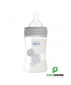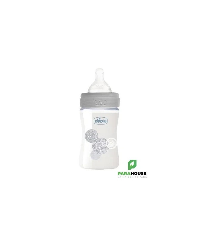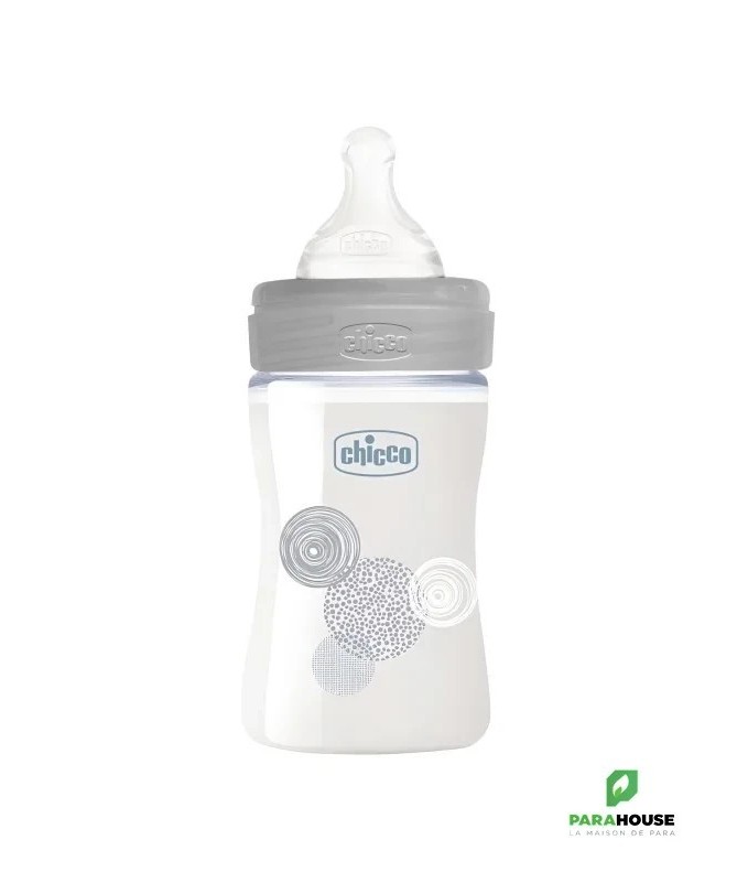 Chicco Well-Being - Biberon en VerreChicco Well-Beingest un biberon ergonomique conçu pour faciliter la tétée, offrant confort et praticité tant pour les bébés que pour les parents.Tétine Physiologique Anti-ColiquesLe biberon est équipé d'unetétine physiologique anti-coliquesen silicone, avec une forme symétrique, étirée et aplatie. Cette forme s’inspire du mamelon et favorise uneprise correctedu sein, ainsi qu'un mouvement naturel de la langue. Douce et souple, la finitionSoft Senseprocure une sensation agréable et naturelle à bébé, tout en respectant son rythme de succion.Caractéristiques Pratiques- Facile à utiliser: fermeture sécurisée et large col pour un remplissage rapide et un nettoyage simplifié.- Verre borosilicate pur: hygiénique, résistant aux chocs et à la chaleur.- Capuchon anti-fuitespour une hygiène parfaite et une protection maximale.- Compatible lave-vaisselleetstérilisable.Conseils d'utilisationAvant la première utilisation,laver et stériliserle biberon. Manipuler avec précaution pour éviter tout risque de casse.IndicationAccessoire d'allaitement artificiel adapté dès la naissance.CompositionBiberon: verre borosilicateTétine: silicone