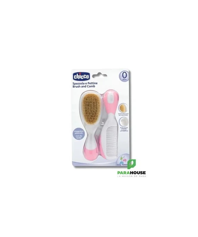 Ensemble brosse et peigne Chicco, spécialement conçu pour coiffer en douceur les cheveux délicats de bébé dès la naissance. Les poils doux de la brosse respectent le cuir chevelu sensible, tandis que le peigne aux dents arrondies évite toute irritation. Parfait comme idée cadeau pour une naissance.- Contient : 1 brosse + 1 peigne- Poils doux adaptés au cuir chevelu de bébé- Dents arrondies pour plus de sécurité- Utilisable dès la naissance (0M+)