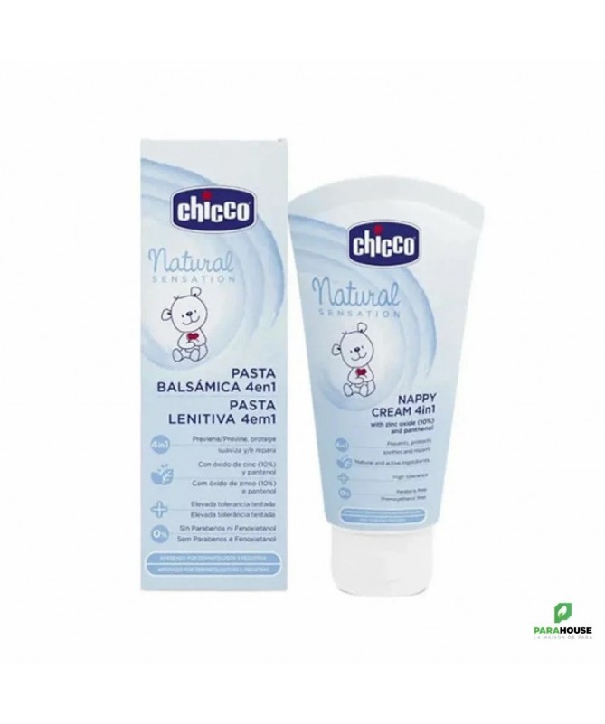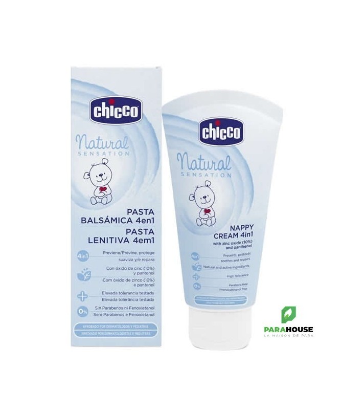 CHICCO NATUREL SENSATION CREME DE CHANGE 4 EN 1 100ML CHICCO NATUREL SENSATION CREME DE CHANGE 4 EN 1, avec 10% d'oxyde de zinc et sans parfum cette creme est idéale pour les peaux sensibles de la zone intime. CHICCO NATUREL SENSATION CREME DE CHANGE est enrichie en beurre de karité, panthénol et vitamine E qui réparent la peau en renforçant ses défenses naturelles et en favorisant le processus naturel de régénération cellulaire Efficacité confirmée par les mamans : 97% des mamans qui l'ont essayé sont satisfaites Composition : INGREDIENTS, INCI UE (USA): Aqua (Water), Paraffinum Liquidum (Mineral Oil), Zinc Oxide, Diethylhexy| Carbonate, PEG-30 Dipolyhydroxystearate, PEG-45/Dodecyl Glycol Copolymer, Hydrogenated Castor Oil, Behenyl Beeswax, Stearyl Beeswax, Butyrospermum Parkii Butter [Butyrospermum Parkii (Shea) Butter], Glycerin, Caprylyl Glycol, Magnesium Sulfate, Panthenol, Propylene Glycol, Ethylhexylglycerin, Tocopheryl Acetate. Conseils d'utilisation : appliquer une fine couche par léger massage sur la peau sèche et propre à chaque changement de couche.