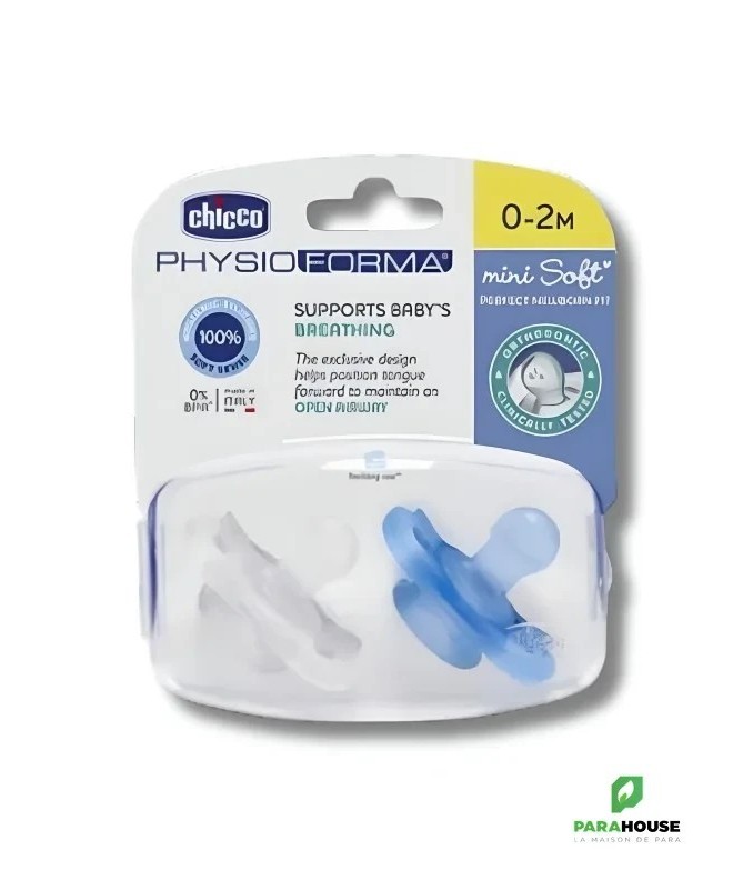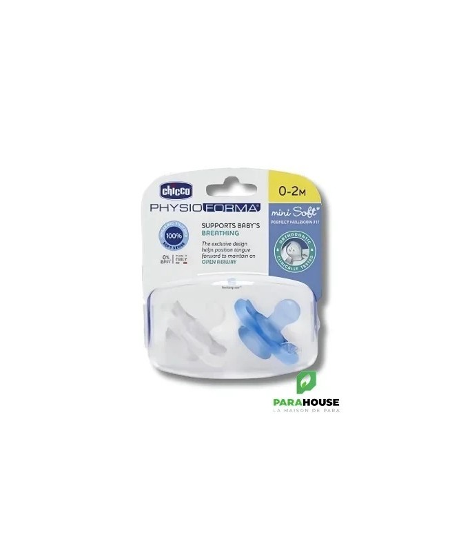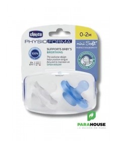 Sucettes Chicco Mini Softpour bébé de 0 à 2 mois, fabriquées à 100% en silicone, avec une finition Soft Sense douce et soyeuse. Leur design permet de garder le nez et le menton de bébé dégagés pour un confort optimal, sans laisser de traces sur son visage. Conçues pour répondre aux besoins de votre bébé.