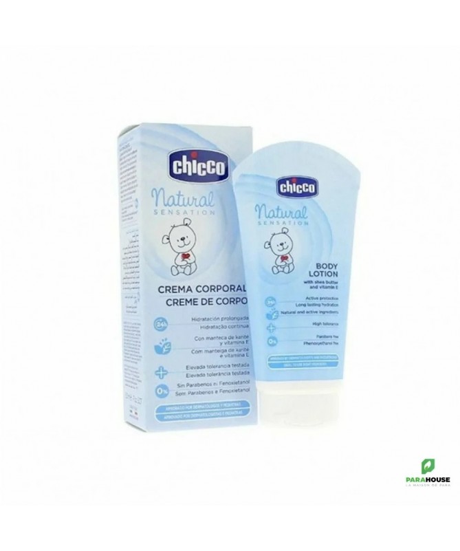 CHICCO NATUREL SENSATION LOTION POUR LE CORPS 150ML CHICCO NATUREL SENSATION LOTION POUR LE CORPS procure une hydratation garantie, grâce à la présence d'ingrédients hydrophiles et de lipides qui créent un effet barrière capable de réduire la perte de liquides de la peau. Au Beurre de Karité : fonction barrière et action régénérante. Avec Vitamine E : action apaisante et protectrice À l'huile de riz, à l'huile d'amande douce et à l'allantoïne : action nourrissante et émolliente Sodium PCA, Sodium Lactate, Fructose, Glycine, Niacinamide, Urée, Inositol (NMF-like mix) : action hydratante Composition : INGREDIENTS, INCI UE (USA): Aqua (Water), Diethylhexyl Carbonate, Glycerin, Glyceryl Stearate, Polyglyceryl-3 Methylglucose Distearate, Butyrospermum Parkii Butter [Butyrospermum Parkii (Shea) Butter], Oryza Sativa Bran Oil [Oryza Sativa (Rice) Bran Oil], Prunus Amygdalus Dulcis Oil [Prunus Amygdalus Dulcis (Sweet Almond) Oil], Sodium Cetearyl Sulfate, Cetearyl Alcohol, Caprylyl Glycol, C10-30 Cholesterol/Lanosterol Esters, Parfum (Fragrance), Carbomer, Panthenol, Propylene Glycol, Ethylhexylglycerin, Tocopheryl Acetate, Sodium Hydroxide, Allantoin, Disodium EDTA, Sodium Lactate, Sodium PCA, Urea, Fructose, Glycine, Niacinamide, Inositol. Conseils d'utilistion : appliquer CHICCO NATUREL SENSATION LOTION POUR LE CORP sur une peau sèche et propre en massant doucement jusqu'à absorption complète.