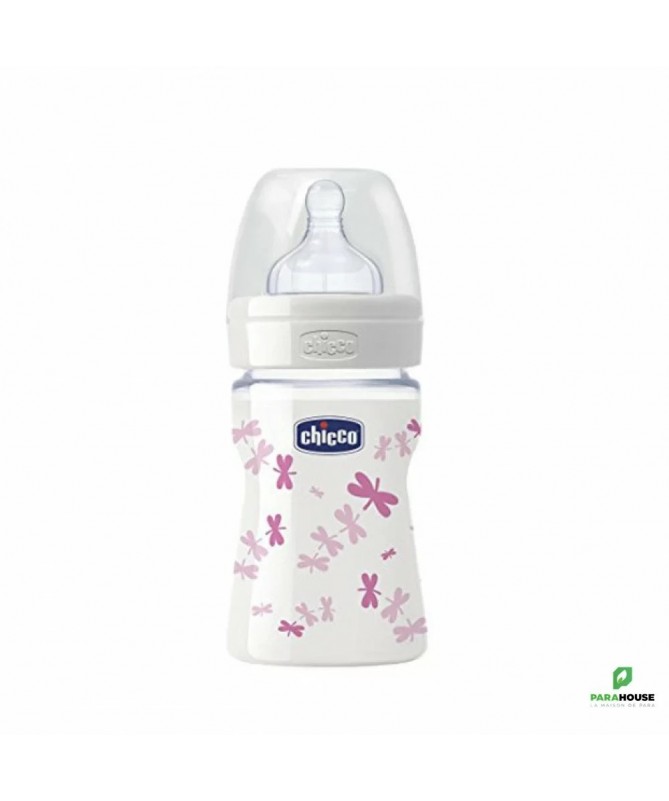Chicco Biberon 0M+ Verre Rose 150ML Ce Biberon en verre Chicco transparent et pur, naturel et écologique. avec des designs Rose pour fille. Le verre est une matière inerte, elle n'absorbe ni ne transmet aucune substance aux aliments qu'il contient même à hautes températures. Maintient la température plus longtemps, capuchon antifuites, col large pour un nettoyage et un remplissage facilités. Ce biberon est très pratique: il est transparent, hygiénique et maintient la température des aliments. Il est fabriqué en verre borosilicate, particulièrement résistent aux chocs et au changements de température. Sa tétine est physiologique avec valve anti-coliques. Il dispose d'un col large pour faciliter le nettoyage et le remplissage. Ce biberon en verre est lavable au lave-vaisselle. Pour un nettoyage à la main, nous vous recommandons l'usage d'un goupillon à biberon. Il peut être stérilisé à l'eau bouillante sans risque de le casser.