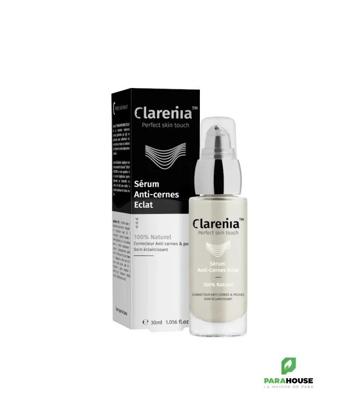 CLARENIA© SERUM ANTICERNES vise à réduire les cernes en réduisant l’accumulation de pigments sanguins sous les yeux. Grâce à ses principes actifs, il réduit significativement l'apparence des cernes bleus dus à une mauvaise circulation et des cernes bruns liés à une surproduction de mélanine. Sa formule 100% naturelle, sa texture enrichie en pigments réflecteurs de lumière, associée à un applicateur métal rafraichissant, permettent à CLARENIA© SERUM ANTICERNES d’illuminer votre regard et vous permet de retrouver un visage rajeuni et plus détendu. Bienfaits : • Les cernes bruns et bleus sont visiblement et significativement réduits • Éclaircissement et uniformisation du teint • Dépigmentant en éliminant les taches • La zone du regard est unifiée et lumineuse • Réduire considérablement l'apparence des poches