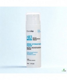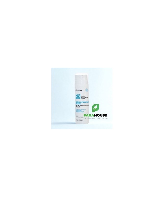 Descriptif :La Clarenia HB3 est une crème hydratante de formulation spécialement conçue pour les peaux mixtes à grasses. Sa texture légère pénètre rapidement sans laisser de résidu brillant, tout en fournissant une hydratation optimale. En outre, elle contient des régulateurs de sébum qui aident à normaliser la production de lipides cutanés, maintenant ainsi un teint hydraté et matifié.0.5%Acide hyaluroniqueHydrate les couches supérieures de l’épiderme et réduit les rougeurs. Accélère le renouvellement cellulaire au niveau de la couche inférieure de l’épiderme.4%NiacinamideAugmente la production des céramides ce qui permet de renforcer notre barrière cutanée.1%Collagène marinAide à maintenir la peau hydratée en renforçant la barrière cutanée et en réduisant la perte d'eau.0.5%Zinc PCALe zinc PCA hydrate et régule la production de sébum de la peau.Bienfaits :Hydrate la peau et la nourrit, tout au long de la journée en lui donnant un aspect sain, souple et lisse.Composition :Aqua, Glycerin, Niacinamide, Marine collagen, Aloe Barbadensis Leaf Juice (gel d'aloe vera), Caprylic, Capric triglyceride, Glycerin, Panthenol, Simmondsia chinensis seed oil (huile de jojoba), Glyceryl stearate, Sucrose stearate/distearate, Opuntia ficus-indica seed oil (huile de figue de barbarie), Allantoin, Citric acid, Hyaluronic acid, Acetate Tocopheryl (Vitamin E), Zinc PCA, Xanthan gum, Salicylic acid, Fragrance, Benzyl alcohol, Dehydroacetic acid.Utilisation:Appliquer matin et soir sur une peau parfaitement nettoyée. Massez jusqu’à pénétration totale du produit.