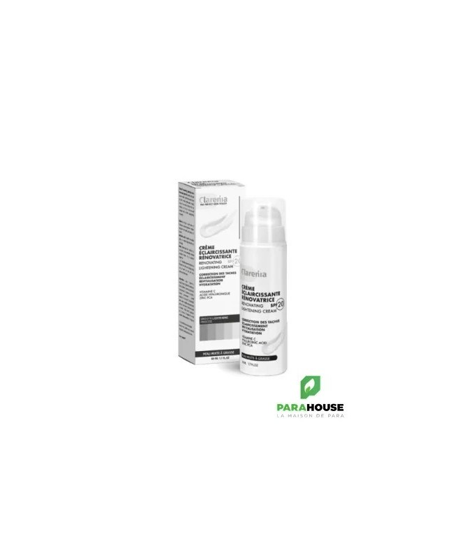 Description :La crème éclaircissante rénovatrice peau mixte à grasse de la marque Clarenia™ permet de corriger les tâches et prévenir leur répartition, d'hydrater la peau en surface et en profondeur, réduire les effets néfastes des UV grâce à une protection solaire SPF 20 et augmenter les bénéfices des traitements dépigmentant grâce à l'association d'actifs efficaces:- Vitamine C: Apporte un véritable coup d'éclat a votre teint.- Arbutine Régule le processus de production de la mélanine.- Acide hyaluronique : Puissant agent hydratant, est un incontournable pour combattre les effets du vieillissement cutané.- Zinc PCA: Est un actif séborégulateur et purifiant.Conseils d'utilisation :Bien nettoyer la peau du visage et du coup avant utilisation. Appliquer en soin quotidien sur l'ensemble du visage et du cou en insistant sur les taches.
