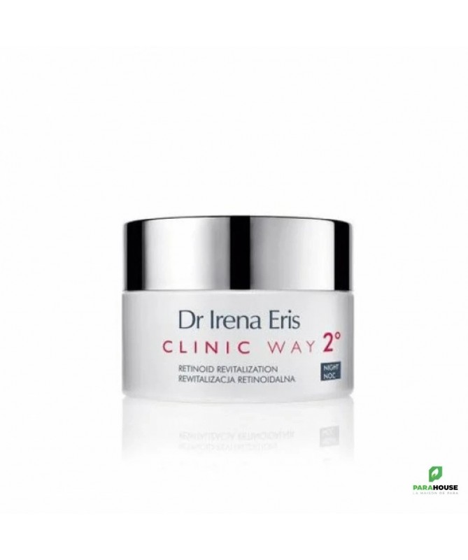 CLINIC WAY Dermocrème anti-rides de nuit 2° Rides statiques (vieillesse) Soins de la peau 40+ revitalisation par rétinoïdes Retinoid complex stimule le régénération, lisse et améliore le teint. CLINIC WAY Dermocrème anti-rides de nuit 2° soin anti-rides pour les femmes de 40 ans et plus RETINOID REVITALIZATION for night combat efficacement les processus responsables de la formation des rides élastotiques grâce à : Réactivateur de renouvellement cutané FGF1 LMS™ avec une technologie unique de transport dermique Lipo-Sphere : inhibe le processus de vieillissement cutané en réactivant les propriétés régénératrices et le potentiel d'auto-renouvellement à trois niveaux. Complexe rétinoïde : favorise l'élimination des dommages cutanés causés par les UV. Il stimule la production de collagène, régule le processus de renouvellement de l'épiderme et la mélanogénèse. Le résultat est une flexibilité et une élasticité accrues, une réduction des rides et une amélioration de la couleur et des fonctions protectrices de la peau. Aqua Calcis : l'eau de chaux de la pharmacopée, en raison de ses propriétés antiseptiques, apaisantes et anti-irritations.