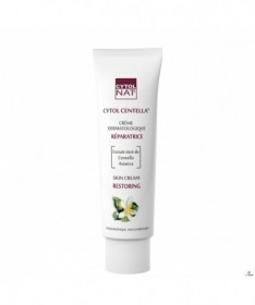 CYTOLNAT CENTELLA CREME APAISANTE REPARATRICE 15ML - A apaise et réduit les rougeurs et les irritations CYTOLNAT CENTELLA CREME APAISANTE REPARATRICE est un soin incontournable pour traiter les irritations cutanées et faciliter la reconstruction épidermique. Cette crème est spécialement formulée pour remédier aux irritations de la peau, soulager l’inflammation et favoriser la reconstruction épidermique. Creme cytolnat centella est formulée à base d’un composant actif exceptionnel de centella asiatica, utilisé dans les traitements cosmétiques et thérapeutiques. Elle est un soin réparateur multi-usages qui aide à apaiser et adoucir la peau tout en prévenant l’apparition de lésions. La crème CYTOLNAT CENTELLA est une émulsion " eau dans huile " qui sert de véhicule pour restaurer le film hydrolipidique naturel de la peau grâce à un agent actif, la Centella Asiatica. Cela permettra ensuite à cet ingrédient principal de mieux pénétrer et de réparer la zone affectée de votre peau notament avec son action anti-bactérienne. CARACTERISTIQUES : Répare et apaise les peaux agressées: brûlures, coups de soleil, froid, pollution. Répare et apaise les peaux exposées aux agents chimiques agressifs : peelings, détergents, savons alcalins. Répare, apaise et soulage après l’épilation, le rasage, les piqûres d’insectes. Utilisée en accompagnement de certaines prises en charge thérapeutiques (sur avis médical) : lasers, radiothérapies, chimiothérapies, thérapies ciblées. INDICATIONS : CYTOLNAT CENTELLA convient pour tout type de peau (notamment les peaux sensibles) et peut être appliquée aussi bien sur le corps que sur le visage. La crème apaisante et réparatrice CYTOLNAT® CENTELLA est utilisée pour accélérer la reconstruction des peaux abîmées, agressées et fragilisées. Composition : Aqua (Water), Glyceryl Stearate, Hydrogenated Polydecene, Vitis Vinifera (Grape) Seed Oil, Propylene Glycol, Stearic Acid, Palmitic Acid, Squalane, Hydrogenated Vegetable Oil, Persea Gratissima (Avocado) Oil, Centella Asiatica Leaf Extract, Algin, Glycine Soja (Soybean) Oil, Triethanolamine, Allantoin, Cetyl Palmitate, Ethylhexylglycerin, Caprylyl Glycol, Tocopheryl Acetate, Disodium EDTA, Retinyl Palmitate, Phenethyl Alcohol, Tocopherol, Parfum (Fragrance) Hypoallergénique Non comédogène. Conseils d'utilisation : Il est conseillé d'appliquer CYTOLNAT CENTELLA localement au niveau des zones à traiter une à deux fois par jour sur une peau préalablement nettoyée. Si nécessaire, recouvrir d’un pansement occlusif. Il est important d'appliquer avec les mains propres et sur la peau préalablement nettoyée
