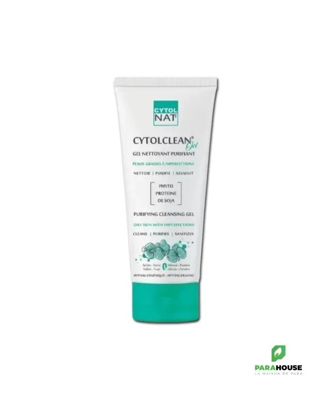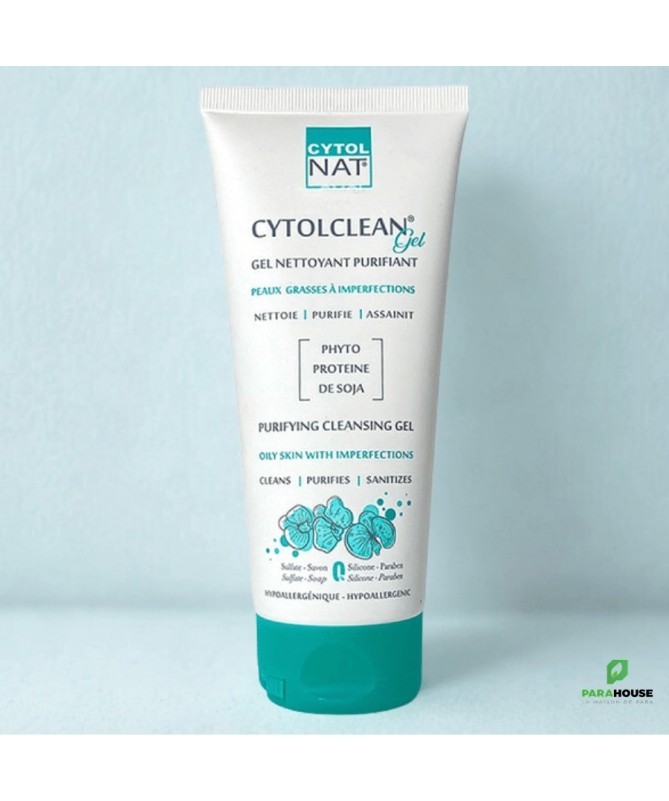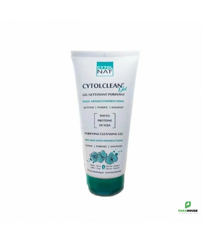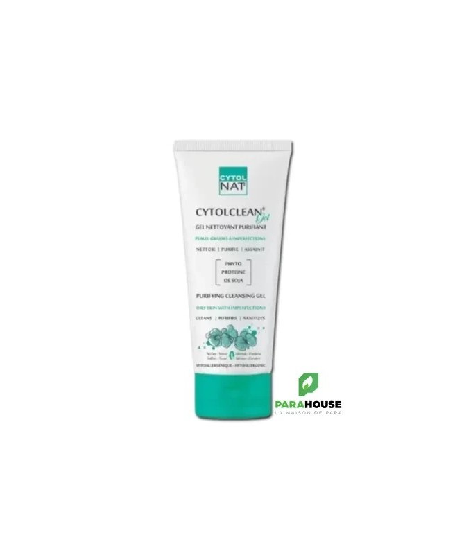 CYTOLNAT CYTOLCLEAN GEL NETTOYANT 175ML Le gel moussant CYTOLCLEAN est un nettoyant sans savon. Sa mousse onctueuse désobstrue les pores et élimine efficacement l’excès de sébum tout en respectant le film hydrolipidique cutané. Enrichi en phyto-protéines de soja et en collagène hydrolysé, il nettoie et purifie l’épiderme sans l’agresser et restaure la flore cutanée perturbée. Chaque ingrédient est scrupuleusement sélectionné et minutieusement dosé pour garantir une tolérance optimale à toutes les peaux.. Bienfaits : Purifiant : CYTOLCLEAN nettoie délicatement la peau grâce à sa base lavante douce d’origine végétale sans dessécher la peau. Régulateur : cytolclean gel nettoyant régule l’excès de sébum. Apaisant : CYTOLCLEAN permet de garantir une hydratation optimale de la peau et procure immédiatement une sensation de calme. Pratique : Tube capsule service permet de doser la bonne quantité du produit à appliquer. Hypoallergénique : cytolclean gel nettoyant a une excellente tolérance cutanée respectant l’équilibre naturel de la peau. Elaboré pour minimiser les risques d’allergie. Convient à toutes les peaux (Peaux normales, mixtes et grasses). Sert à préparer la peau aux soins dermatologiques. Composition : WATER (AQUA) • SODIUM LAUROYL SARCOSINATE •. COCOYL AMIDOPROPYL DIMETHYL GLYCINE•L COCAMIDOPROPYL DIMETHYLAMINE HYDROXYPROPYL / HYDROLYSED COLLAGEN • GLYCERIN• PEG-18 GLYCERYL OLEATE COCOATE • PEG-7GLYCERYL COCOATE • HYDROLYSED SOY PROTEINS (SOJA HISPIDA)• FRAGRANCE(PARFUM) •TRICLOSAN • IMADAZOLINYLUERA•TETRASODIUM EDTA• CITRIC ACID. Conseils d'utilisation: Il est recommandé d'Appliquer CYTOLCLEAN matin et/ou soir sur peau préalablement humidifiée, faire mousser puis rincer abondamment et sécher délicatement. Eviter le contact avec les yeux. Visage et corps.