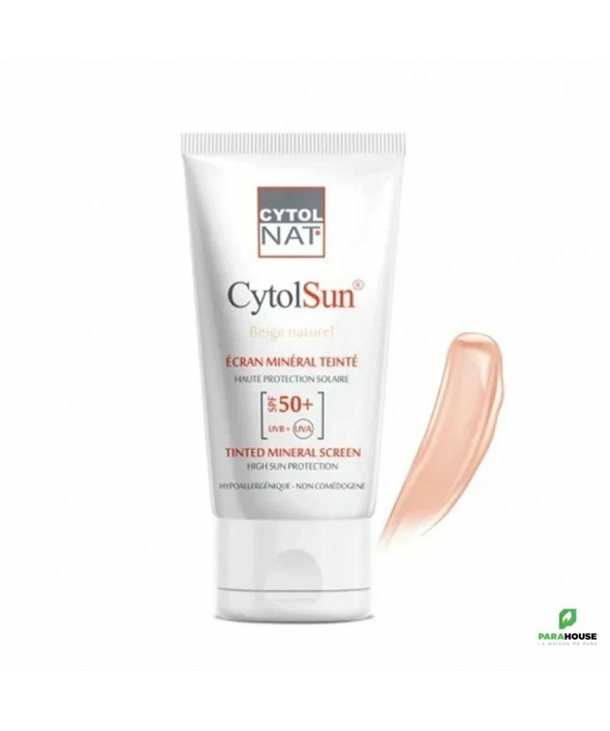 Découvrez le CYTOLNAT CYTOLSUN ÉCRAN SPF50+ TEINTE BEIGE NATUREL 50ML, votre allié incontournable pour une protection optimale contre les rayons UV. Conçu pour les peaux sensibles, cet écran solaire offre une haute protection SPF50+, préservant votre peau des agressions du soleil tout en lui apportant un teint naturel et lumineux. Grâce à sa teinte beige naturel, il sadapte parfaitement à votre carnation, unifiant votre teint tout en le protégeant.Sa formule légère et non grasse permet une application facile et agréable, sans laisser de résidus blancs. Ce soin solaire est idéal pour un usage quotidien, que ce soit à la plage, en ville ou lors de vos activités en extérieur. En plus de sa protection UV, il hydrate votre peau et la laisse douce et souple.Faites le choix dune protection efficace et esthétique avec CYTOLNAT CYTOLSUN ÉCRAN SPF50+ TEINTE BEIGE NATUREL. Offrez à votre peau le meilleur de la protection solaire tout en affichant un teint naturel éclatant.formule hypoallergénique, sans filtres chimiques, san paraben, sans parfum.Une texture teintée : unifie le teint et atténue les imperfections.Résiste à leau.Conseils d'utilisation :Appliquer uniformément sur le visage et sur les zones sensibles aux UV une dose de CytolSun avant toute exposition au soleil.Renouveler lapplication en cas dexposition prolongée.