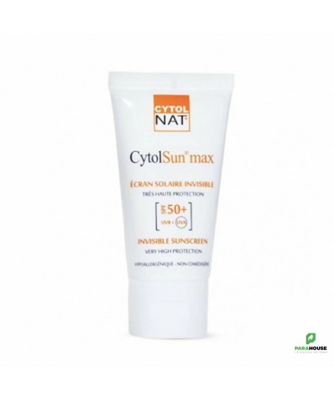 Description :CytolSun max est une crème dermatologique photo-protectrice destinée aux peaux photosensibles et intolérantes à tous types d’ensoleillement.Cette crème solaire enrichie en vitamine E, en antioxydant et en aloé vera bio, hydratant et apaisant, protège votre peau des effets néfastes du soleil.Indice de protection : 50+, UVA 34, normes de l’ANSM.Photoprotecteurs organiques photoposables à large spectre (Tinosorb, Uvasorb, Parsol), double protection anti UVA et UVB.Conseils D'utilisation :• Appliquer généreusement et de façon uniforme CytolSun max sur le visage et sur les zones sensibles aux UV 20 min avant l’exposition au soleil.• La dose de produit solaire recommandée est de 2 mg/cm2.• Renouveler fréquemment l’application après chaque bain ou en cas d’exposition prolongée.• Eviter l’exposition solaire aux heures d’ensoleillement maximal.• N’exposer pas les bébés et les jeunes enfants directement au soleil.Composition :AQUA • OCTOCRYLENE • METHYLENE BIS-BENZOTRIAZOLYL TETRAMETHYLBUTYLPHENOL • DICAPRYLYL CARBONATE • DIISOPROPYL ADIPATE • BUTYL METHOXYDIBENZOYLMETHANE • ETHYLHEXYL TRIAZONE • GLYCERIN • CETEARETH-25 • HYDROGENATED POLYISOBUTENE • CETEARYL ALCOHOL • C18 -36 ACID GLYCOL ESTERS • POTASSIUM CETYL PHOSPHATE • CETEARETH-6 • DIMETHICONE • GLYCERYL STEARATE • PEG-100 • STEARATE • ALOE BARBADENSIS LEAF EXTRACT • POLYACRYLAMIDE • STEARYL ALCOHOL • ALLANTOIN • C13- 14 ISOPARAFFIN • TOCOPHERYL ACETATE • XANTHAN GUM • PHENOXYETHANOL • DISODIUM EDTA • POTASSIUM SORBATE • CHLOPENSEIN • LAURETH -7 • FRAGRANCE (PARFUM) COUMARIN • LIMONENE • ALPHA-ISOMETHYL IONON • GERANIOL • LINALOOL.