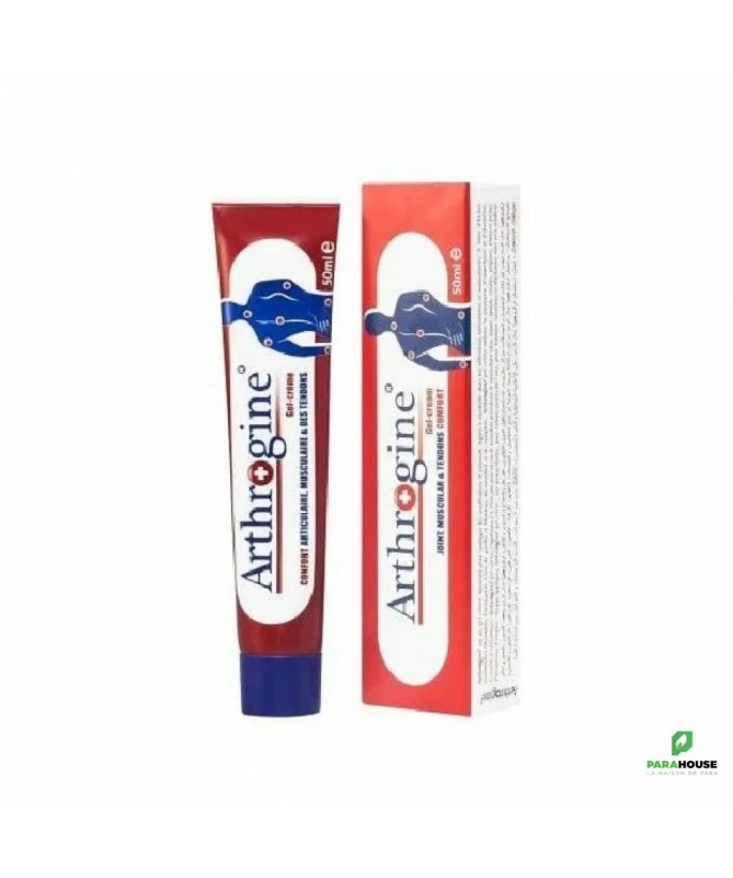 ARTHROGINE Gel Creme 50ML ARTHROGINE Gel Creme est un gel-crème relaxant et antalgique qui a été spécialement formulé pour soulager les douleurs d’intensités légères à modérées dans les affections rhumatismales et musculaires et diminuer la raideur articulaire. Grâce à sa formule riche en huiles essentielles (romarin,menthe,camphre,eucalyptus,menthol et clou de girofle), Arthrogine gel crème a une action anti-inflammatoire, antalgique et anesthésiante et procure une sensation de froid qui favorise la réduction des douleurs et de l’’œdème A partir de 7 ans La diminution des spasmes musculaires. La réduction du gonflement post-traumatique. L’accroissement de la mobilité. La réduction des douleurs grâce au ralentissement des impulsions nerveuses. Procuration d’une sensation de confort et de bien-être. Tendinites superficielles. Entorses et contusion. Arthroses des petites articulations. Lombalgies aiguës.