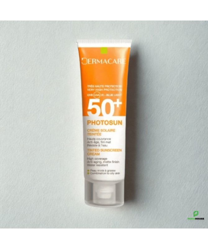 DERMACARE PHOTOSUN Creme Solaire Teintee Peaux Mixtes A Grasses 01 Photosun la Crème teintée très haute protection SPF 50 + de dermacare permet d'hydrater, illuminer, unifier le teint et donner un effet peau mate avec un toucher doux. Convient parfaitement aux peaux mixtes à grasses claires, sujettes aux coups de soleil, à l'ensoleillement élevé. Photosun la Crème teintée très haute protection SPF 50 +, PPD 28, qui protège la peau des UVA / UVB et des infrarouges, permet d'hydrater, illuminer, unifier le teint et donner un effet bonne mine avec un toucher doux et soyeux. Dermacare ecran solaire est d'une formule hypoallergénique, apaisante, protectrice et régénératrice qui combat les signes du vieillissement prématuré de la peau dus au méfaits du soleil. Non grasse. Non comédogène Résiste à l’eau Sans parabène Conseils d'utilisation: Il est recommandé d'appliquer DERMACARE ecran uniformément une généreuse quantité sur le visage, nettoyé et séché ou préalable avant toute exposition au soleil Renouveler fréquemment l'application surtout après les baignades, une sudation excessive ou aprés une exposition prolongée au soleil