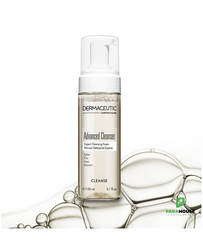 DERMACEUTIC ADVANCED CLEANSER MOUSSE NETTOYANTE Zinc, Urea, Glycerin Dermaceutic Advanced Cleanser est une mousse micro-aérée qui permet de nettoyer et démaquiller efficacement et d'éliminer l'excès de sébum, procurant à la peau une sensation de pureté, de fraîcheur et d'hydratation.Nettoie la peau en douceur, DERMACEUTIC MOUSSE NETTOYANTE démaquille efficacement le visage et les yeux, Elimine l'excès de sébum et Respecte l'équilibre de la peau. Adapté à tous les types de peau, y compris les peaux sensibles, Advanced Cleanser préserve l'hydratation de la peau grâce à un complexe hydratant reconnu et offre douceur et confort à la peau. Mousse nettoyante douce Nettoie et démaquille efficacement Réduit l'excès de sébum et les impuretés Pour tous les types de peau Actifs: XYLITOL : capable de capter l'eau et de la maintenir dans la couche cornée et de lisser le micro relief cutané.Lutte contre le dessèchement de la peau Micro-exfoliation des cellules mortes ZINC : action purifiante, Élimine l'excès de sébum COMPLEXE HYDRATANT: UREE / GLYCERINE Hydratation intense des couches superficielles de l'épiderme TENSIOACTIFS : Agents nettoyants doux d'origine végétale. Ne pique pas les yeux. Composition : Aqua (Water), Cocamidopropyl Betaine, Glycerin, Sodium Cocoyl, Glutamate, Xylitylglucoside, Pentylene Glycol, Urea, Zinc Pca, Anhydroxylitol, Xylitol, Coco-glucoside, Glyceryl Oleate, Capryloyl Glycine, Citric Acid, Parfum (Fragrance), Ethylhexylglycerin, Isopropyl Alcohol, O-cymen5-ol, Sodium Chloride, Sodium Benzoate. Végan Sans silicone Conseils d'utilisation : Il est indiqué d'appliquer DERMACEUTIC MOUSSE sur le visage humide, masser soigneusement et rincer à l'eau claire.