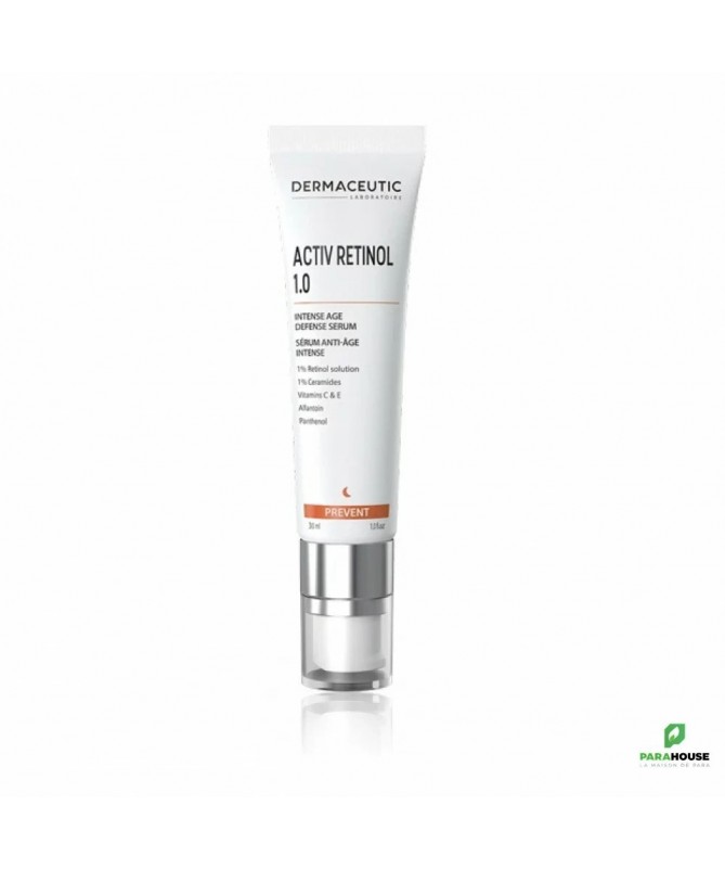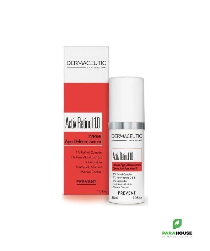 Dermaceutic Activ Retinol 1.0 Serum Anti Age Intensif Activ Retinol1.0 est un Sérum Anti-âge Intensif qui permet de rénover la qualité de l'épiderme et réduit les signes du vieillissement. Activ Retinol 1.0 est indiqué pour les rides et le relâchement cutané. Dermaceutic Retinol 1 prévient l’apparition des signes du vieillissement cutané grâce à leur concentration optimale en rétinol. Combiné à un cocktail d'antioxydants et de céramides, il aide à protéger et à renforcer la peau. La peau est rénovée et les signes du vieillissement cutané sont diminués. Cette formule est recommandée pour lutter contre la perte d'élasticité et le teint terne. Adapté à tous les types de peau, elle assure un confort maximal et des résultats visibles. Réduit les signes de vieillissement Améliore l'élasticité et l'éclat de la peau Protège et renforce la peau L'apparence des ridules et des rides est réduite L'éclat naturel de la peau apparaît restauré La texture de peau est visiblement plus lisse Composition : Complexe de rétinol : Agent anti-âge qui stimule la production de collagène pour combattre les signes du photovieillissement et améliore la texture de la peau. 1 % Céramides : Agent hydratant qui renforce la barrière cutanée, assure une hydratation équilibrée et aide la peau à se régénérer. Esters de vitamines C & E : Combinaison synergique de deux puissantes vitamines offrant la protection ultime contre le photovieillissement. Panthénol & Allantoïne : Agents hydratants et apaisants qui apportent hydratation et confort à la peau. Formule INCI : Water (Aqua), Diglycerin, Trideceth-9, Ethylhexyl Methoxycrylene, Panthenol, Retinol, Ascorbyl Tetraisopalmitate, Ascorbyl Palmitate, Tocopherol, Allantoin, Cholesterol, Sphingolipids, Phospholipids, Lecithin, Hydrogenated Palm Glycerides Citrate, Polyacrylate Crosspolymer-6, Peg-40 Hydrogenated Castor Oil, Phenoxyethanol, Polysorbate 20, Ethylhexylglycerin, Disodium Edta, T-Butyl Alcohol, Bht, Potassium Sorbate, Bha, Citric Acid, Glyceryl Stearate, Glyceryl Oleate, Sodium Citrate, Sodium Hydroxide Conseils d'utilisation: Il est indiqué d'Appliquer Activ Retinol 1 sur le visage et le cou le matin ou le soir, avant votre crème Dermaceutic. Éviter le contour des yeux.
