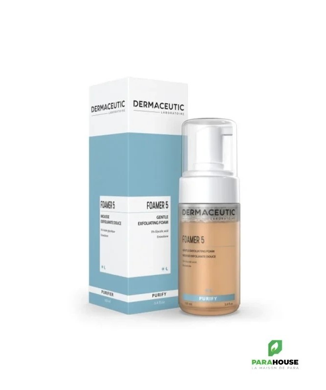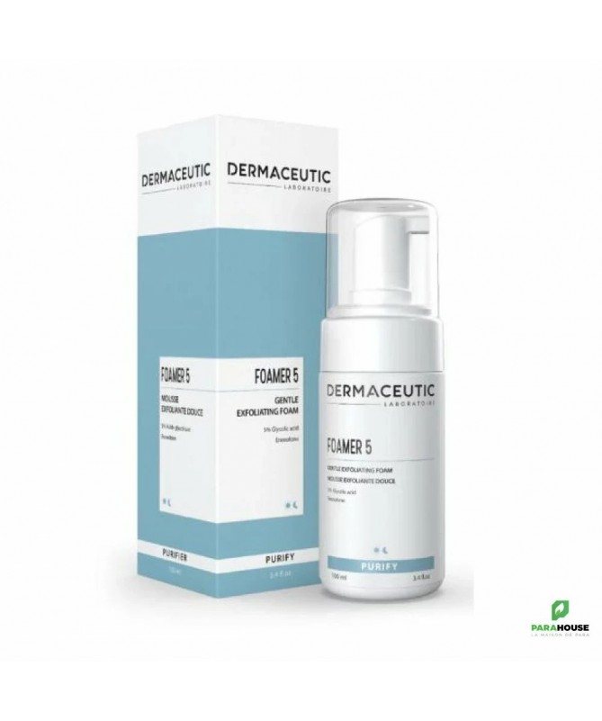 DERMACEUTIC FOAMER 5 Mousse Nettoyante DERMACEUTIC FOAMER 5 Mousse Nettoyante est un exfoliant à usage quotidien pour nettoyer et purifier la peau. L'acide glycolique exfolie la peau et élimine les cellules mortes et les impuretés à l'origine des imperfections. L'énoxolone apaise la peau. Le teint devient uniforme, la peau douce et éclatante et le teint uniforme et lumineux. Elle est particulièrement adaptée aux peaux ternes, irrégulières ou à problèmes et convient à tous types de peaux. Résultats : Purifie et exfolie Élimine les cellules mortes et les impuretés Apaise et calme la peau Laisse la peau éclatante et lisse Excellente tolérance dermatologique. Convient à tous type de peau ans silicone & sans parfum Vegan Composition : Liste complète des ingrédients : Water (Aqua), Glycolic Acid, Glycerin, Cocamidopropyl Betaine, Sodium Hydroxide, Polysorbate 80, Propylene Glycol, Sodium Laureth Sulfate, Methylpropanediol, Glycyrrhetinic Acid, Dipotassium Glycyrrhizate, Cocamidopropyl Betainamide MEA Chloride, Potassium Sorbate, Cocamidopropyl Dimethylamine, Yellow 5 (CI 19140), Yellow 6 (CI 15985). 5 % Acide glycolique : AHA (Acide α-hydroxylé) dérivé d'acides de fruits et connu pour son action kératolytique. Il pénètre facilement la peau pour stimuler le renouvellement cellulaire en détruisant les liens qui unissent les cellules mortes entre elles. Énoxolone :Agent anti-inflammatoire puissant extrait de la racine de réglisse. Aussi nommé acide bêta glycyrrhétinique, il est reconnu pour ses propriétés apaisantes et calmantes. Sans silicone & sans parfum Vegan Conseils d'utilisation : Il est recommandé d'utiliser DERMACEUTIC FOAMER 5 Mousse tous les jours.