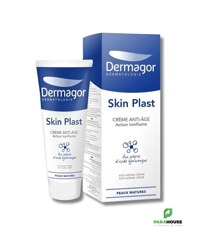 DERMAGOR Skin Plast Crème Anti-Âge Peau Sèche 40mlLa crème anti-rides DERMAGOR Skin Plast est spécialement conçue pour les peaux sèches. Elle hydrate en profondeur, réduit rides et ridules et apporte confort et souplesse à la peau. Sa formule stimule la production de collagène et d’élastine pour un teint visiblement plus jeune et lumineux. Adaptée à un usage quotidien, elle laisse la peau douce et veloutée.Ingrédients :EauHuile de tournesolEsters de jojobaGlycérineAlcool cétéaryliqueCire d'abeilleHuile de cocoHuile de carthameExtraits de calendula, tournesol, mélisse, millepertuis, souci, thym, sureau, bardane, romarin, sauge, plantain, mauveHuiles essentielles de géranium, lavandin, lavande, romarin, thymLécithine, Acide citrique, Parfum, Limonène, Linalol, Géraniol, Citronellol, Citral, CoumarineConseils d'utilisation :Nettoyez le visage avec un nettoyant doux.Appliquez une petite quantité sur le visage et le cou, massez jusqu'à absorption.Utilisez matin et soir pour un effet optimal.Évitez le contact avec les yeux. Rincez abondamment si nécessaire.Pour une protection solaire, appliquez un écran adapté après la crème.Consultez un professionnel si vous êtes enceinte, allaitez ou avez une condition médicale.Conservez dans un endroit frais et sec, à l’abri de la lumière directe.Arrêtez l’utilisation en cas d’irritation et consultez un dermatologue si besoin.