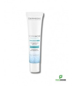 Lacrème de nuit anti-imperfectionsaux propriétés antioxydantes est recommandée pour le soin nocturne des peaux mixtes à grasses sujettes aux lésions acnéiques.Lapapaye (Papain), une enzyme protéolytique présente dans la formule, exfolie en douceur les cellules mortes de l'épiderme, stimule la régénération cutanée et apaise les irritations. Associée à la vitamine C, elle réduit les imperfections : atténue les décolorations, illumine le teint et lisse les papules ou boutons.L'acide oléiqueprovenant du beurre de cacao améliore l'apparence de la peau, augmente son élasticité et favorise les processus de revitalisation et de régénération de l'épiderme.La crème est enrichie en ingrédients actifs qui régulent la production de sébum et diminuent l'apparence des pores dilatés. Elle possède également des propriétés antioxydantes et anti-âge grâce au complexeOxyniacyde™et à la vitamine E, qui inhibent la formation des radicaux libres. Elle maintient l'équilibre hydrique de l'épiderme en hydratant et limitant la perte d'eau transépidermique.Le complexe brevetéVeprolanum DH®agit sur les causes de l'acné et ses exacerbations.Recommandé pour :Soin quotidien de nuit pour les peaux mixtes à grasses sujettes aux lésions acnéiquesMode d’emploi :Appliquer le soir sur un visage propre et tapoter doucement jusqu'à absorption complète.Ingrédients actifs :Eau thermaleComplexe Veprolanum DH® (Hexylresorcinol, Acide linoléique, Resvératrol, Hordenine, Neurotransmetteur GABA)Complexe Oxyniacyde™ (Extrait de racine de Scutellaria Baicalensis, Niacinamide, Resvératrol)PapainAcide hyaluroniqueBeurre de cacaoBeurre de karitéHuile d’oliveVitamines C et E (Oxynex® K)Extrait de thé vert