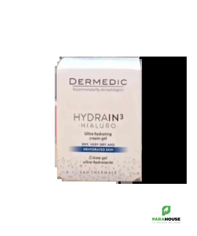 DERMEDIC HYDRAIN GEL CREME ULTRA HYDRATING 50ML Dermedic Hydrain gel creme permet de fournir une hydratation intense, en profondeur et de longue durée qui peut être ressentie 48 heures après l'application de réhydrater la peau et limiter la perte d'eau transépidermique, renforcer et régénèrer la peau La solution essentielle pour le soin des peaux déshydratées et très sèches. DERMEDIC HYDRAIN 3 GEL CREME offre une hydratation intense, profonde et durable pendant 48 heures après l'application, en comblant les carences en eau de la peau et en réduisant sa perte transépidermique (TEWL). Le gel crème ultra hydratant HydraIn 3 convient à tous les types de peau surtout aux peaux déshydratées et très sèches, restant léger et non gras, de consistance crémeuse et gélifiée. Hydrate durablement et lisse la peau. Apaise et protège. Retarde le vieillissement cutané. Contribue au maintien de l'équilibre de la microflore cutanée. Assure une hydratation cutanée pendant 48 heures. Ne laisse aucun résidu gras ni collant. Renforce et régénère. Formule légère, idéale pour le maquillage. Non comédogène. À l'eau thermale. Testé cliniquement. Composition : Complexe Aqualare® (Eau thermale + 4 formes d'acide hyaluronique + Glycosaminoglycanes + Tréhalose), Urée, Glycérine, Dub Diol, Bétaïne, Phytosqualane – Squalane, Vitamine E, Allantoïne Conseils d'utilisation: Appliquer DERMEDIC HYDRAIN 3 GEL CRÈME uniformément sur le visage, le cou et le décolleté nettoyés et laisser absorber. Recommandé pour tout type de peau nécessitant une hydratation, y compris peaux acnéiques et peaux en cours des thérapies dermatologiques.