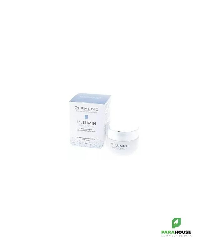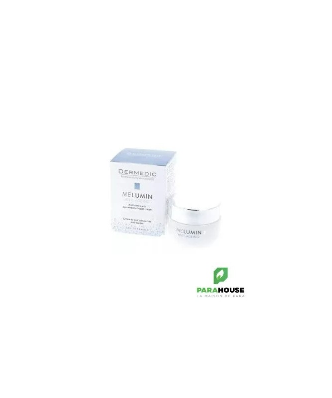 La Crème de nuit concentrée anti taches Dermedic Melumin enrichie d'Ingrédients actifs: Complexe MeluminTM Tristage (arbutine, Lightderm, vitamine C, niacinamide), papaïne, vitamine E, beurre de karité, huile de noix de coco, huile d’avocat, glycérine, allantoïne. MELUMIN Crème de nuit permet de : Fournir une protection à plusieurs niveaux contre les décolorations Illuminer les taches d'hyperpigmentation existantes Éliminer en douceur les cellules épidermiques mortes et stimule la régénération de l'épiderme Testé dermatologiquement et cliniquement
