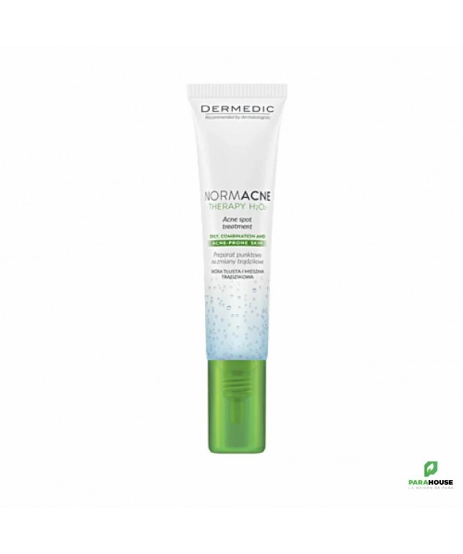 DERMEDIC NORMACNE Traitement Localisé Acné DERMEDIC NORMACNE Traitement Localisé est recommandé pour le traitement local des inflammations liées à l'acné. DERMEDIC NORMACNE Traitement Localisé Acné : Il a un effet bactéricide. Il apaise l'inflammation et régénère la peau. Il réduit la taille et le nombre de lésions d'acné. Il accélère la guérison des lésions d'acné Amélioration visible après la première application. Il nettoie les pores obstrués, régule la production de sébum. Élimine la décoloration de la peau due à l'acné et empêche leur formation. Il rétablit l'équilibre dans le microbiome de l'épiderme localement modifié Élimine les décolorations cutanées liées à l'acné et prévient leur formation Hypoallergénique Testé cliniquement Avec de l'eau thermale Composition : Acide salicylique, Peroxyde d'hydrogène, Acide lactobionique, D-Panthénol Non comédogène Testé cliniquement Conseils d'utilisation : Il est conseillé d'appliquer DERMEDIC NORMACNE Traitement Localise Acne localement sur la zone affectée par les et laisser absorber. Appliquer matin et soir sur la peau plusieurs fois par jour. Ne pas utiliser pendant l'exposition au soleil.