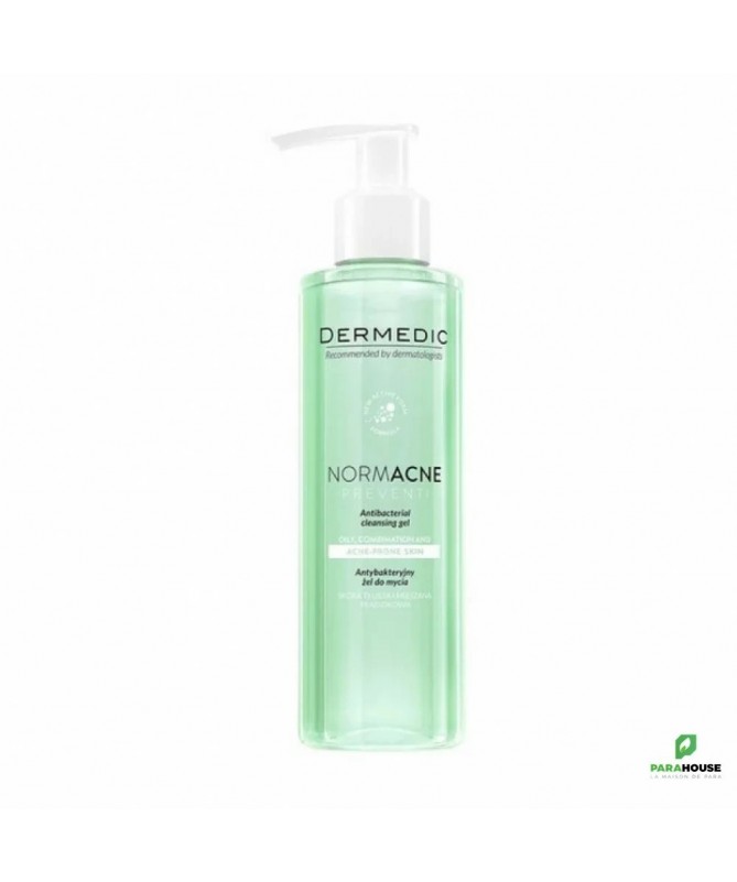 Description :Peaux mixtes, peaux grasses et peaux à tendance acnéique.La peau sensible à l'acné est généralement un problème rencontré par les jeunes et sa cause directe peut être l'hyperactivité des glandes sébacées.Les symptômes de l'acné comprennent des points noirs ainsi que des éruptions populaires et pustuleuses dans les zones séborrhéiques (visage et dos).Les lésions acnéiques sont le plus souvent causées par : une production excessive de sébum, une kératinisation accrue des glandes sébacées qui provoque leur blocage, et le développement d'infiltrations inflammatoires autour des glandes sébacées.Les dermocosmétiques Normacne de Dermedic constituent une gamme complète de cosmétiques ciblant de manière globale les problématiques des peaux à tendance acnéique.Propriétés antibactériennesRégule le travail des glandes sébacéesEmpêche la formation de nouvelles lésions d'acnéNe laisse aucune sensation de tractionPrésente des propriétés antiseptiques (prévention des infections)Type de peau : mixte à tendance grasse sujette aux imperfectionsSans alcoolConseils d'utilisation :Utiliser matin et soir.Appliquer une petite quantité de gel sur la peau du visage humidifiée avec de l'eau.Massez doucement, puis rincez abondamment à l'eau.Ingrédients :Zincidone, extrait de thé vert, hydrolite, glycérine.