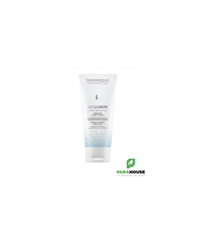 L'emulsion Micellaire Eclaircissante Dermedic Melumin enrichie d'Ingrédients actifs: Complexe MeluminTM Tristage (Arbutine, Lightderm, Vitamine C, Niacinamide), Acide lactobionique, Glycérine, D-Panthénol. Cette Emulsion Micellaire permet de Nettoyer efficacement la peau des impuretés et démaquille, d'empêcher la formation de taches d'hyperpigmentationPour laver avec ou sans eau Prend en charge le traitement dépigmentant Testé ophtalmologiquement et dermatologiquement