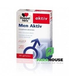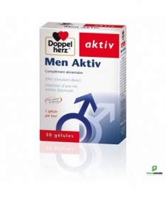 AKTIV Men Aktiv 30 GELULES Men Aktiv créé par Doppelhertz à partir d’une sélection d’extraits végétaux, de vitamines et de minéraux connus pour leurs effets bénéfiques sur l’appareil reproducteur masculin. Men Aktiv de Doppelherz agit en deux temps: A court terme: la caféine et le ginseng ont un effet stimulant et énergisant. Le gotu kola améliore la circulation sanguine périphérique qui irrigue les organes génitaux. Le maca influence le métabolisme de l’oxyde nitrique libéré lors d’une stimulation sexuelle. A long terme: le maca influence positivement le psyché. Celui-ci joue un rôle prépondérant dans la vie sexuelle en modérant les effets du stress. De plus, le maca contient d’importantes quantités d’arginine, de phytostérols, de flavonoïdes et de tanins qui favorisent la fonction du système circulatoire, la transmission de l’influx nerveux et la qualité de l’éjaculat. Le zinc contribue, quant à lui, au maintien d’un taux normal de testostérone. Le sélénium et la vitamine E sont importants pour la formation du sperme. Men Aktiv de Doppelherz: pour les hommes souffrant de dysfonctionnement érectile modéré et pour ceux qui veulent améliorer leur libido. Composition : Huile de soja (solvant), extrait sec de racine de Maca, gélatine (bovine), huile de noix de coco, glycérine (humectant), sorbitol (humectant), extrait de feuilles de Gotu Kola, extrait sec de racines de Ginseng, caféine, lécithine (émulsifiant), mono- et diglycérides d’acides gras (émulsifiant), oxyde de zinc, vitamine E, oxyde de fer (colorant), sélénite de sodium. Sans gluten Sans lactose Conseils d'utilisation : Il est indiqué de prendre Une fois par jour, après le repas, avaler une capsule avec un grand verre d’eau. Ne pas croquer la capsule. Ne pas dépasser la posologie recommandée. Les compléments alimentaires ne peuvent pas se substituer à une alimentation équilibrée et variée. Tenir hors de la portée des enfants. A conserver à une température inférieure à 25 °C.