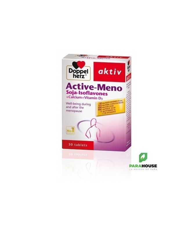 AKTIV AKTIV-MENO 30 COMPRIMES AKTIV Meno est riche en Isoflavones de Soja +Calcium+ Vitamine D3 ; un complément alimentaire pour une meilleure qualité de vie de la femme pendant et aprés la ménopause. Les comprimés AKTIV Meno contiennent une combinaison spéciale d'isoflavones de soja , de calcium , de vitamine D3 et de vitamines du groupe B soigneusement développée pour répondre aux besoins de la femme durant la ménopause. Le calcium est un minéral vital, à la fois requis dans de nombreux processus métaboliques et dans la constitution des os. Lors de la ménopause on assiste àn une fuite du calcium des os qui peut conduire à l’ostéoporose, d’où la nécessité d’apporter à l’organisme plus de calcium par le biais de l’alimentation. La vitamine D3 participe à la régulation du taux sanguin de calcium et sa fixation dans le tissus osseux et les dents. Elle participe aussi au bon fonctionnement neuromusculaire et à la régulation cardiaque. Le complexe de vitamines B intervient dans des processus vitaux comme le métabolisme énergétique, la division cellulaire, la production des globules rouges et la synthèse d’hémoglobine. Composition : Carbonate de calcium (calcium), concentré de soja riche en isoflavones, amidon, gomme arabique (agent de charge), dioxyde de silicone (agent antiagglomérant), cellulose en poudre (agent de charge), hydroxypropylméthylcellulose (agent d’enrobage), sels de calcium d’acides gras (agent antiagglomérant), hydroxycarbonate de magnésium (agent antiagglomérant), graisse de palme (totalement hydrogénée), talc (agent antiagglomérant), hydroxypropylcellulose (agent de charge), polyéthylène glycol (agent d’enrobage), mono et diglycérides d’acides gras (émulsifiants), chlorhydrate de pyridoxine (vitamine B6), mononitrate de thiamine (vitamine B1), oxydes et hydroxydes de fer (colorants), riboflavine (vitamine B2), acide ptéroylmonoglutamique (acide folique), D-biotine, cholécalciférol (vitamine D3), cyanocobalamine (vitamine B12). Sans gluten Sans lactose Conseil d'utilisation : Une fois par jour , aprés le repas, avaler un comprimé de AKTIV MENO avec un grand verre d'eau. Ne pas croquer le comprimé. NB: Ne pas dépasser la posologie quotidienne recommandée. Les compléments alimentaires ne peuvent pas se subtituer à une alimentation équilibrée et variée. Tenir hors de la portée et de la vue des enfants.