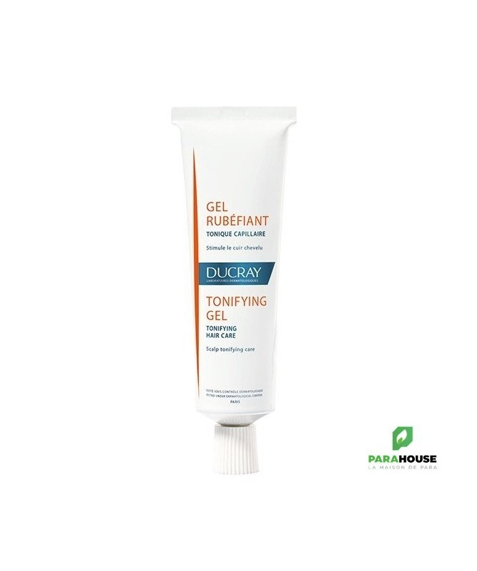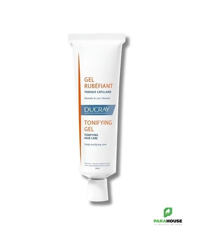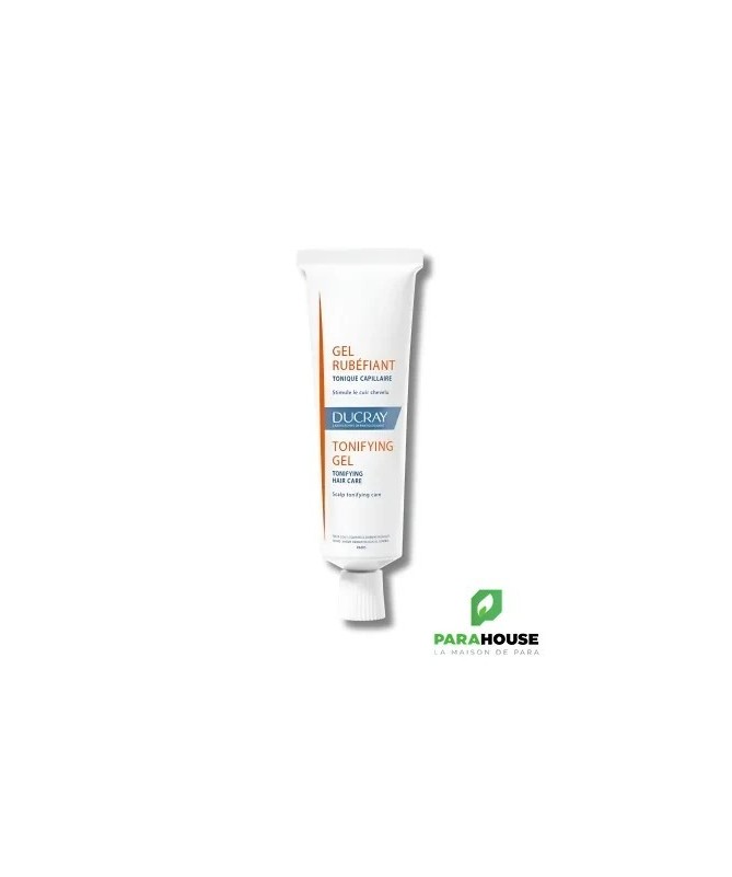 Description:Le gel rubéfiant stimule le cuir chevelu et favorise la nutrition des bulbes pilaires.Grâce à ses propriétés tonifiantes et rééquilibrante , il fortifie le cuir chevelu et apporte vigueur aux cheveux.Eléments principaux :Nicotinate de méthyle.Essences naturelles.Gel alcoolique 70°.Résultats :Très bonne tolérance.Pénétration rapide : 94%*.Augmentation de la microcirculation cutanée : +32% après 15min**.Test d' usage sous contrôle dermatologique chez 31 sujets pendant 14 jours : % de satisfaction.Evaluation de la microcirculation cutanée chez 22 sujets.Caractéristiques :Marque : DUCRAY.Gamme : RUBEFIANT.Produit : Gel.Tonique, favorise l' irrigation du cuir chevelu, stimule et fortifie la racine.Conditionnement : tube 30 ml, étui carton.Période après ouverture : 12 mois.Conseils d’utilisation:Appliquer le gel rubéfiant sur la ou les zones concernées.Masser légèrement.Ne pas rincer.Notre recommandation : utiliser ce gel une fois par jour pendant 3 mois.Précautions d' emploi :Ne pas utiliser sur peaux lésées.Eviter le contact avec les yeux ; rincer en cas de contact avec les yeux.Ne pas laisser à la portée des enfants.Composition:ALCOHOL (ALCOHOL DENAT), WATER (AQUA), PEG-15 COCAMINE, PEG-40 HYDROGENATED CASTOR OIL, FRAGRANCE (PARFUM), CARBOMER, ACETIC ACID, CEDRUS ATLANTICA WOOD OIL,CITRAL, EUGENOL, LIMONENE, LINALOOL, METHYL NICOTINATE.